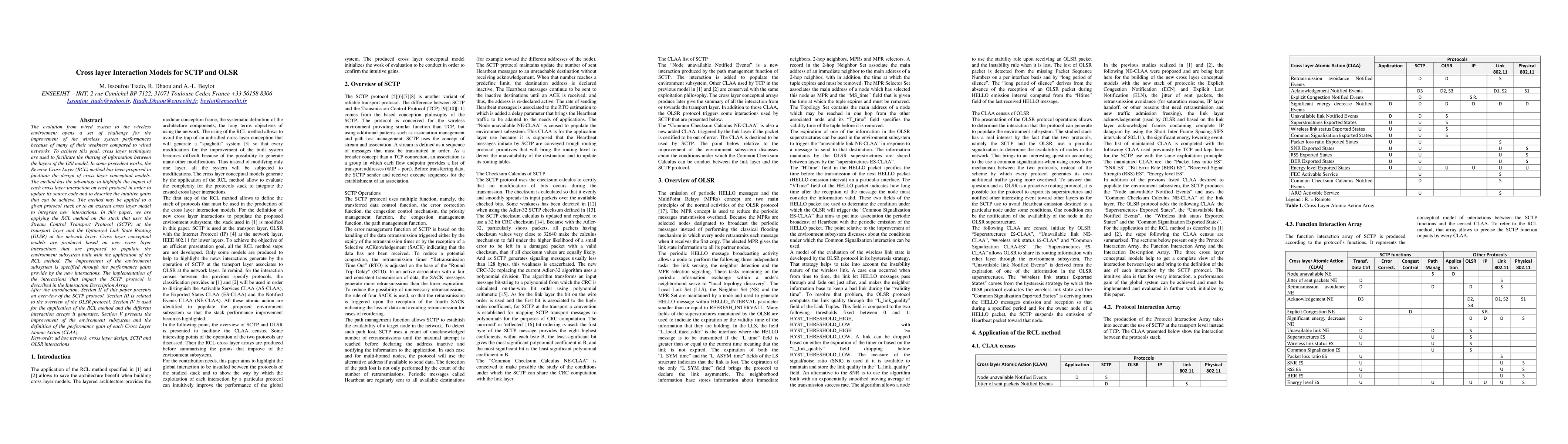 This paper uses a method called Reverse Cross Layer (RCL) to improve the performance of wireless networks by integrating SCTP and OLSR protocols. It proposes new cross-layer interactions that lead to better system performance.