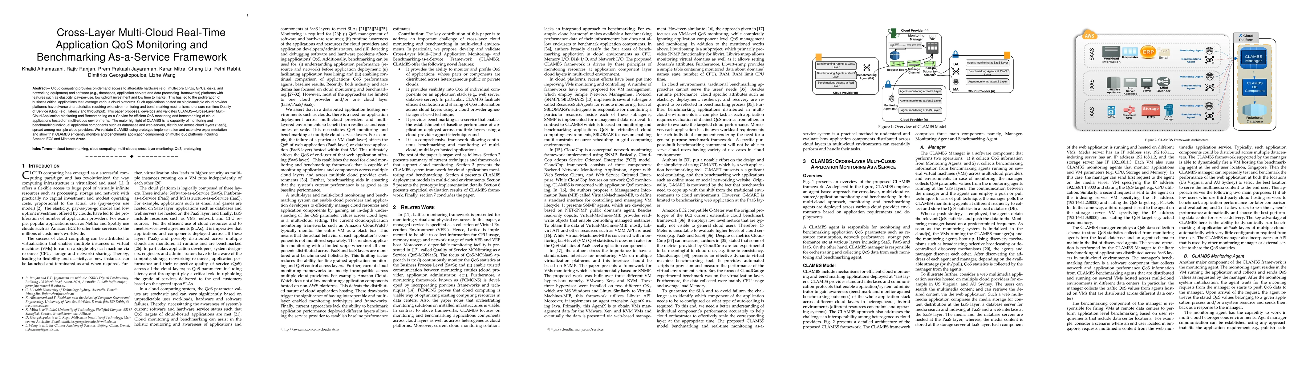 This paper introduces CLAMBS, a Cross-Layer Multi-Cloud Application Monitoring and Benchmarking as-a-Service framework designed for efficient Quality of Service (QoS) monitoring and benchmarking of cloud applications deployed across multiple cloud providers. The framework enables monitoring and benchmarking of individual application components such as databases and web servers, and is validated through prototype implementation and extensive experimentation.