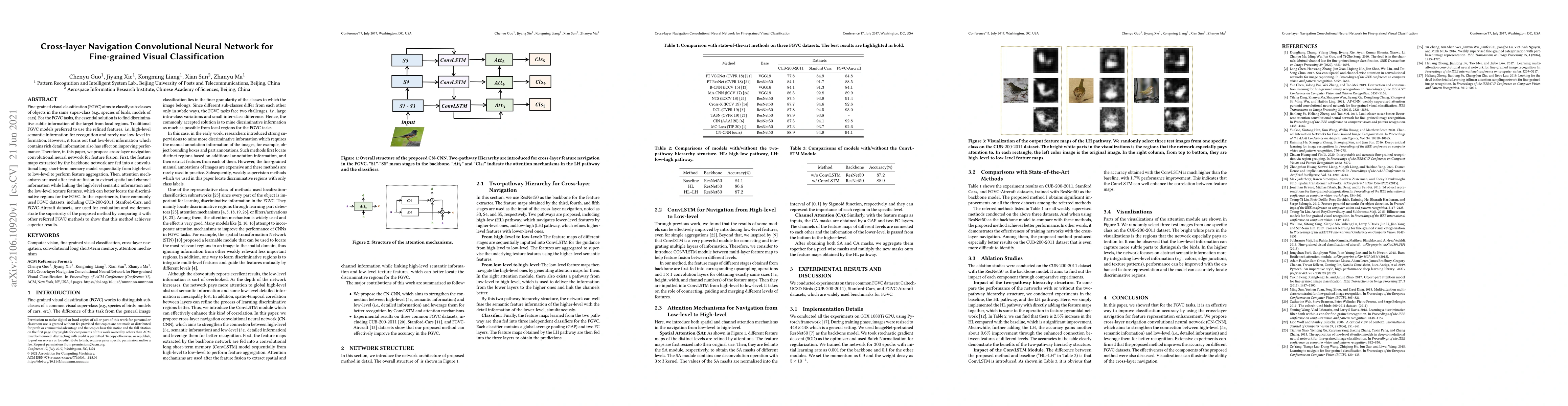 This paper proposes a cross-layer navigation convolutional neural network for fine-grained visual classification, integrating both high-level semantic and low-level texture features through sequential feature aggregation and attention mechanisms. The method outperforms other FGVC methods on datasets like CUB-200-2011, Stanford-Cars, and FGVC-Aircraft.
