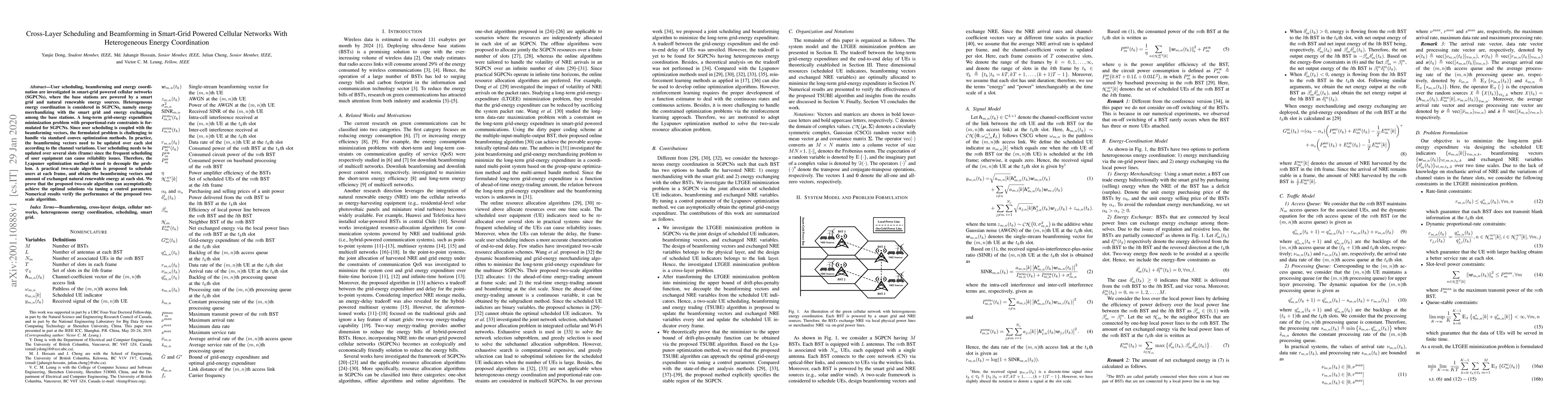 This paper investigates user scheduling, beamforming, and energy coordination in smart-grid powered cellular networks, focusing on minimizing grid-energy expenditure through heterogeneous energy coordination. A two-scale algorithm is proposed using Lyapunov optimization to decouple the complex problem, achieving optimal solutions asymptotically.