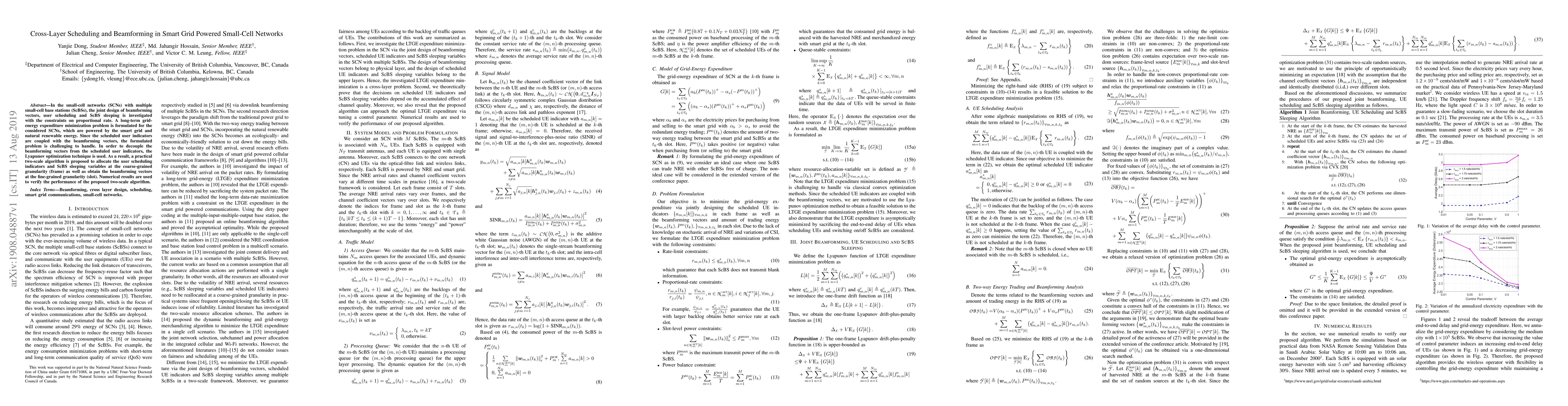 This paper investigates joint beamforming, user scheduling, and base station sleeping in smart grid-powered small-cell networks to minimize long-term energy expenditure. A two-scale algorithm leveraging Lyapunov optimization decouples beamforming from scheduling, achieving efficient resource allocation at different granularities.