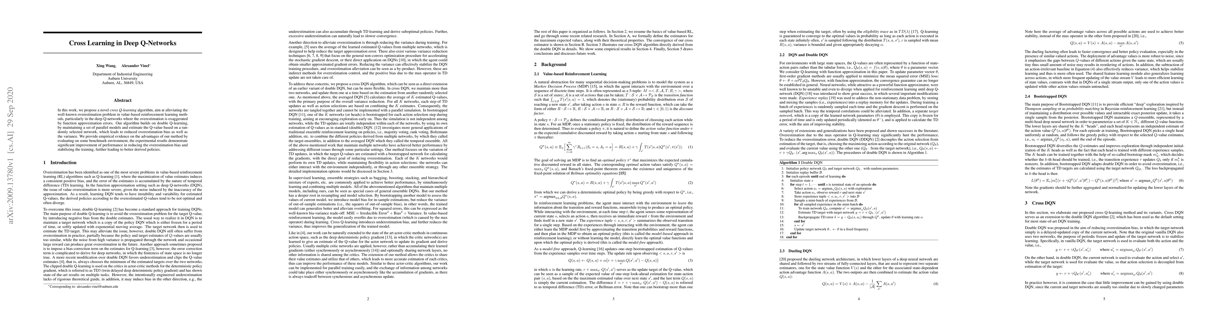 A new cross-learning algorithm is proposed to address overestimation in deep Q-networks, achieving improved performance through reduced bias and variance.