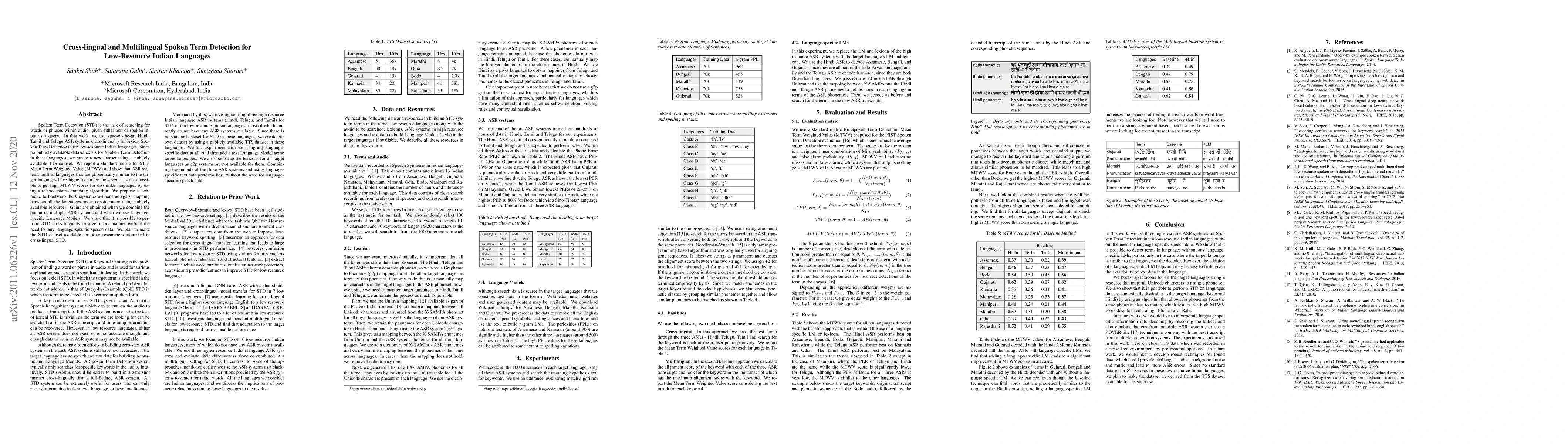 This paper explores cross-lingual Spoken Term Detection (STD) in ten low-resource Indian languages using state-of-the-art ASR systems for Hindi, Tamil, and Telugu. The authors create a new dataset and demonstrate that phonetic similarity boosts accuracy, while a relaxed phone matching algorithm can achieve high performance across dissimilar languages.