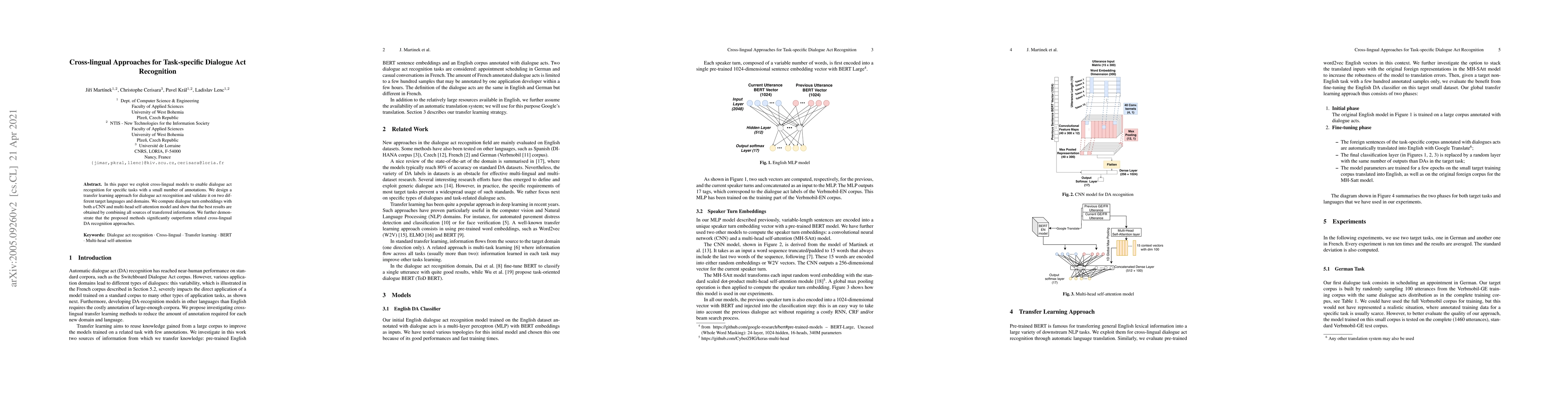 In this paper we exploit cross-lingual models to enable dialogue act recognition for specific tasks with a small number of annotations. We design a transfer learning approach for dialogue act recognition and validate it on two different target languages and domains. We compute dialogue turn embeddings with both a CNN and multi-head self-attention model and show that the best results are obtained by combining all sources of transferred information. We further demonstrate that the proposed methods significantly outperform related cross-lingual DA recognition approaches.