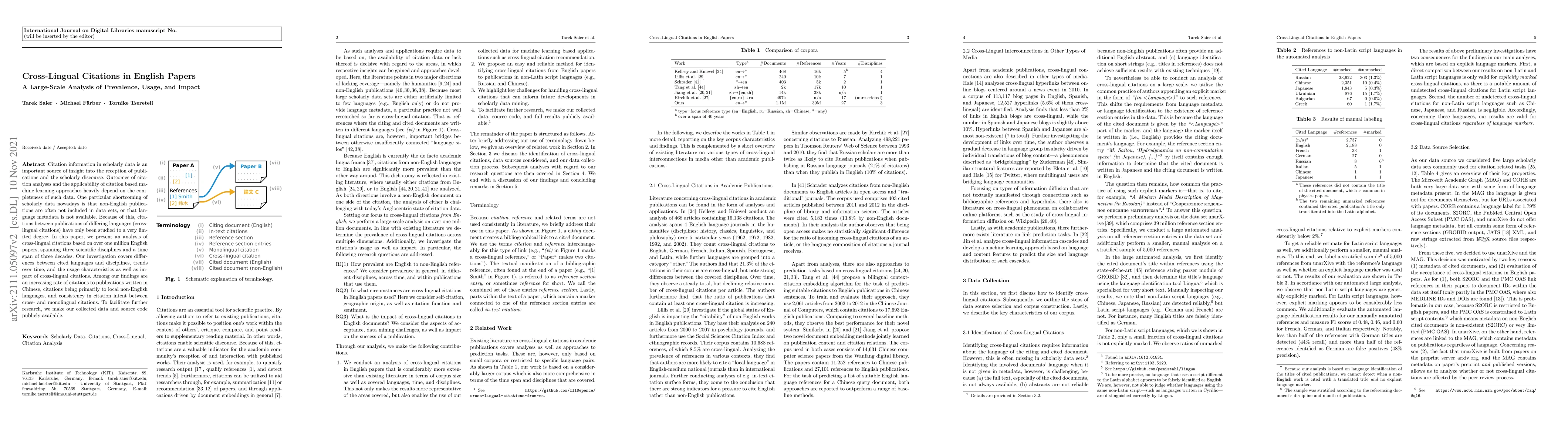 This study analyzed over 1 million English papers across three disciplines for cross-lingual citations, finding increasing rates of citations to Chinese publications and consistency in citation intent. The analysis provides insights into the prevalence, usage, and impact of cross-lingual citations in scholarly discourse.