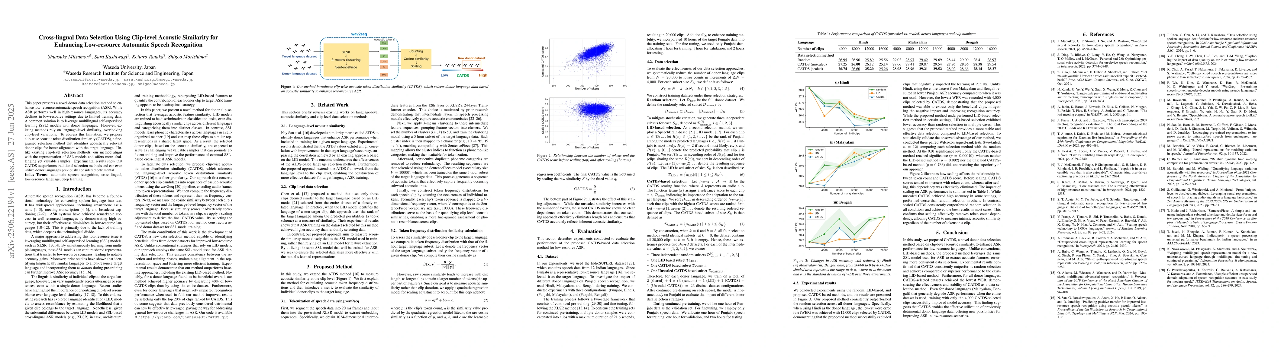 This paper presents a novel donor data selection method to enhance low-resource automatic speech recognition (ASR). While ASR performs well in high-resource languages, its accuracy declines in low-resource settings due to limited training data. A common solution is to leverage multilingual self-supervised learning (SSL) models with donor languages. However, existing methods rely on language-level similarity, overlooking clip-level variations. To address this limitation, we propose clip-wise acoustic token distribution similarity (CATDS), a fine-grained selection method that identifies acoustically relevant donor clips for better alignment with the target language. Unlike existing clip-level selection methods, our method aligns with the representation of SSL models and offers more challenging yet valuable samples. Experimental results show that CATDS outperforms traditional selection methods and can even utilize donor languages previously considered detrimental.