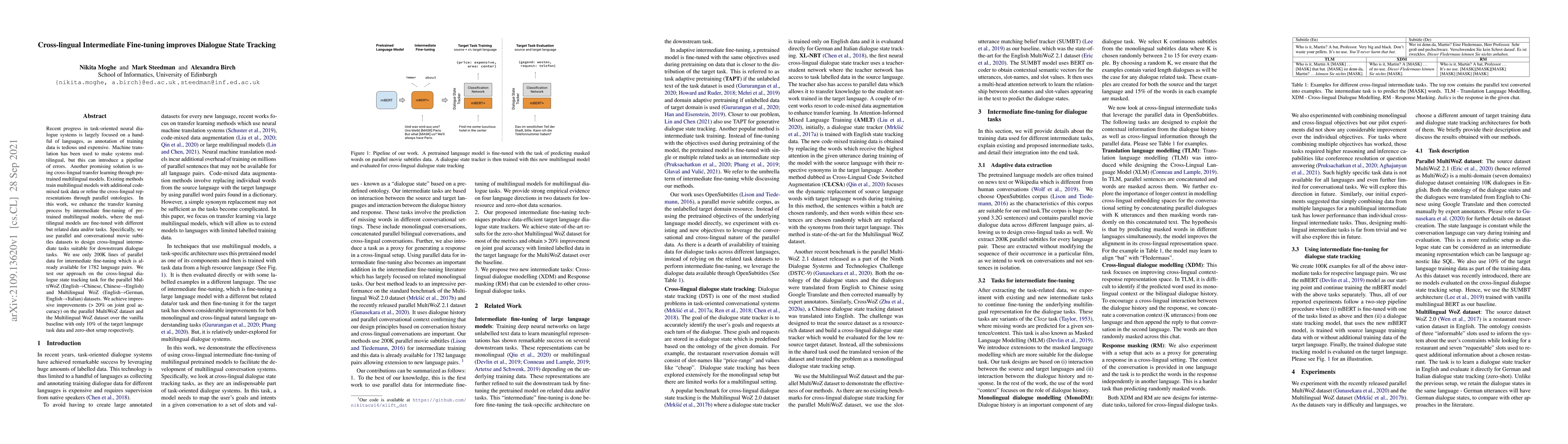 This paper proposes cross-lingual intermediate fine-tuning of pretrained multilingual models to enhance dialogue state tracking across languages. The approach achieves over 20% improvement in joint goal accuracy using limited parallel data, demonstrating significant gains over baselines with minimal target language data.