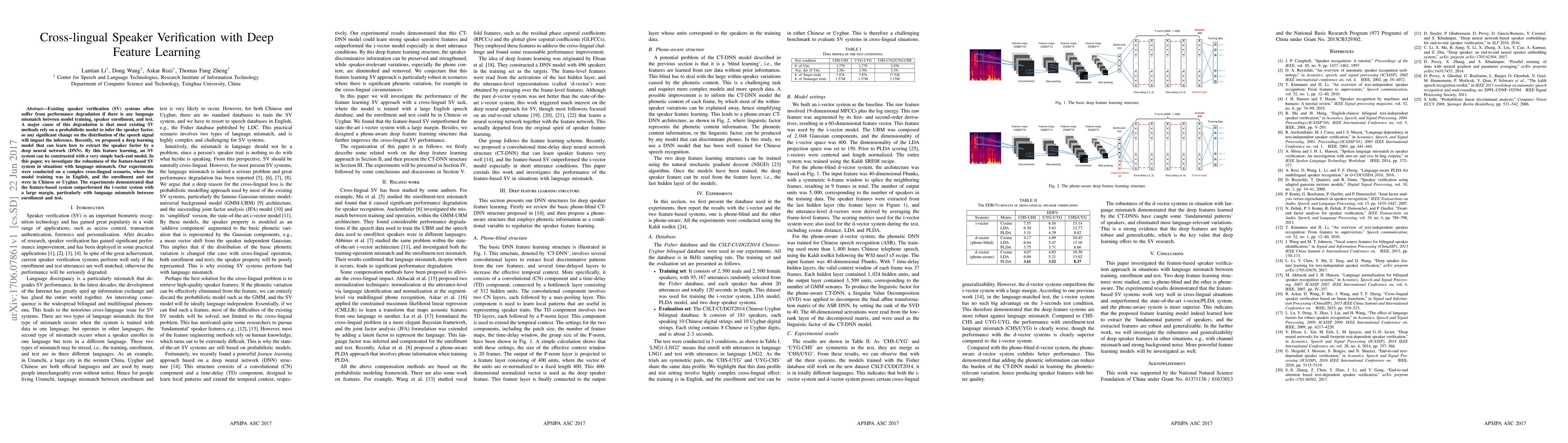This paper proposes a deep learning-based speaker verification system that extracts speaker factors through deep feature learning, demonstrating improved robustness against language mismatch compared to traditional probabilistic models. Experiments in a cross-lingual setting showed significant performance gains over conventional i-vector systems, especially when enrollment and test languages differ.