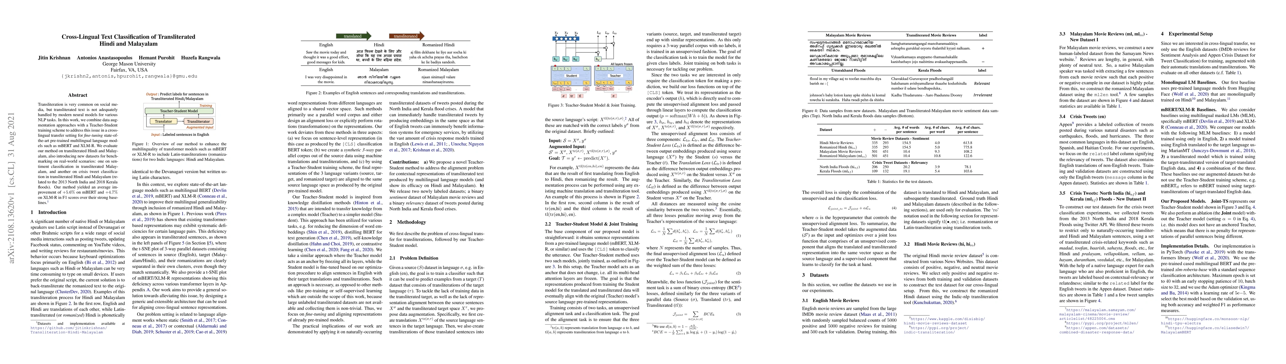 This research paper proposes a method to improve cross-lingual text classification on transliterated languages like Hindi and Malayalam, achieving average improvements of +5.6% and +4.7% over strong baselines using mBERT and XLM-R models.