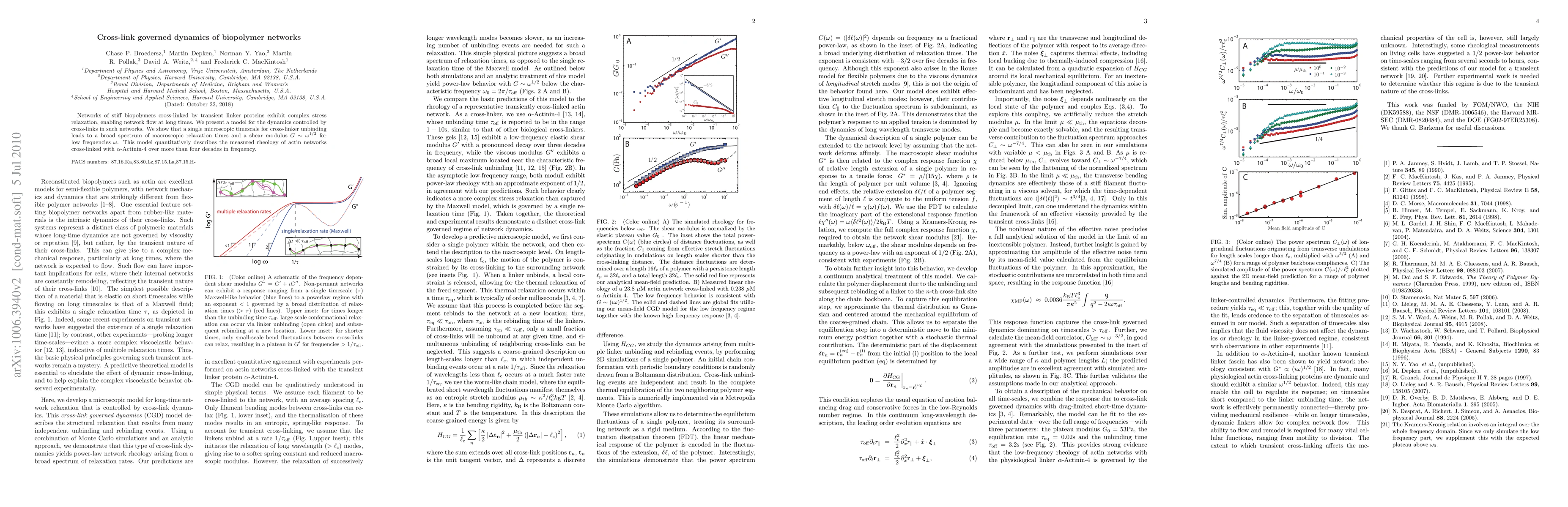 Researchers developed a model for the mechanical properties of transient biopolymer networks, showing that a single microscopic timescale for cross-linker unbinding leads to a broad spectrum of macroscopic relaxation times. The model quantitatively describes the frequency behavior of actin network cross-linked with alpha-Actinin-4 over four decades in frequency.