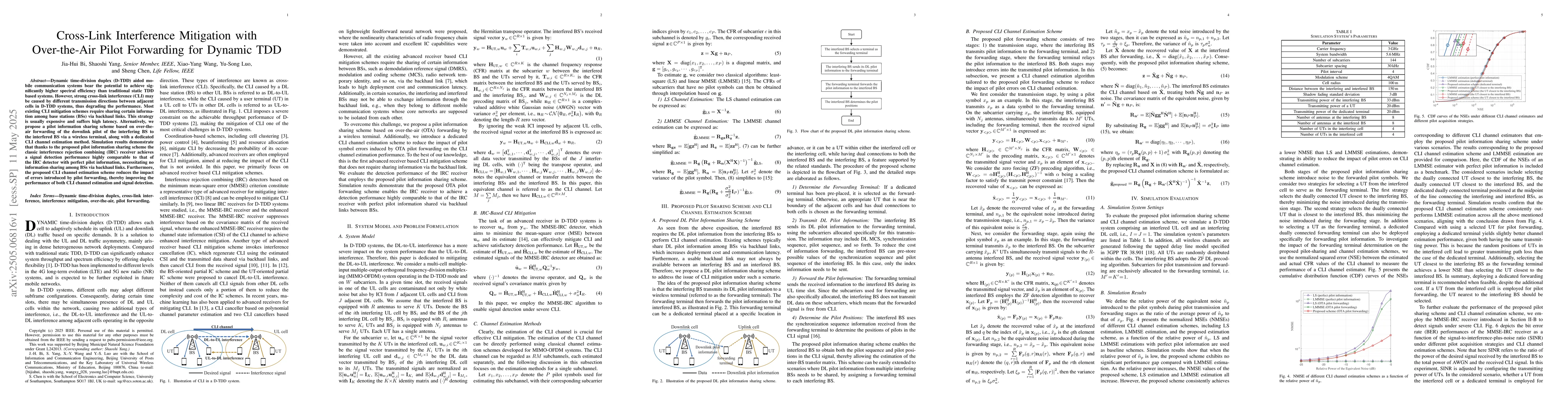 The paper proposes a pilot information sharing scheme for cross-link interference (CLI) mitigation in Dynamic TDD systems, utilizing over-the-air forwarding of pilot signals via wireless terminals and a dedicated CLI channel estimation method.