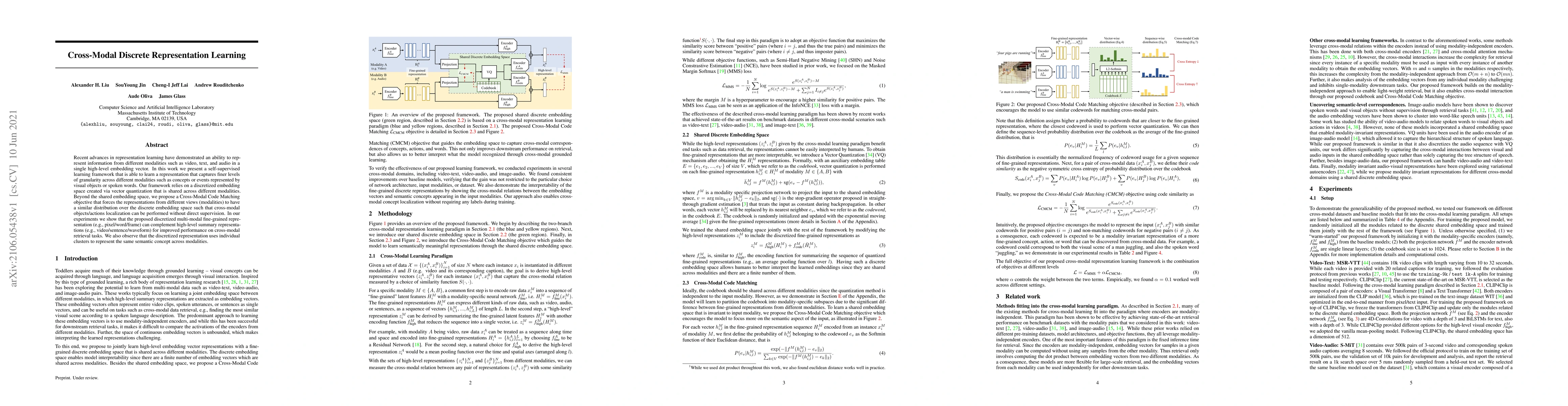 This paper introduces a self-supervised learning framework for cross-modal representation learning using vector quantization to create a shared discretized embedding space. The proposed Cross-Modal Code Matching objective aligns representations across different modalities, enabling cross-modal localization without direct supervision, and shows improved performance in cross-modal retrieval tasks.