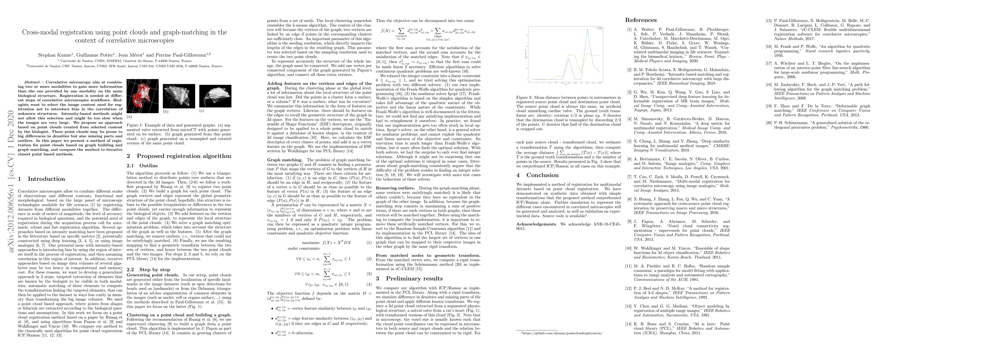 This paper proposes a registration method for correlative microscopies using point clouds and graph matching, addressing the need for biologist-selected image content to avoid bias. It compares this method to traditional iterative closest point approaches, highlighting its potential for handling large, complex datasets.