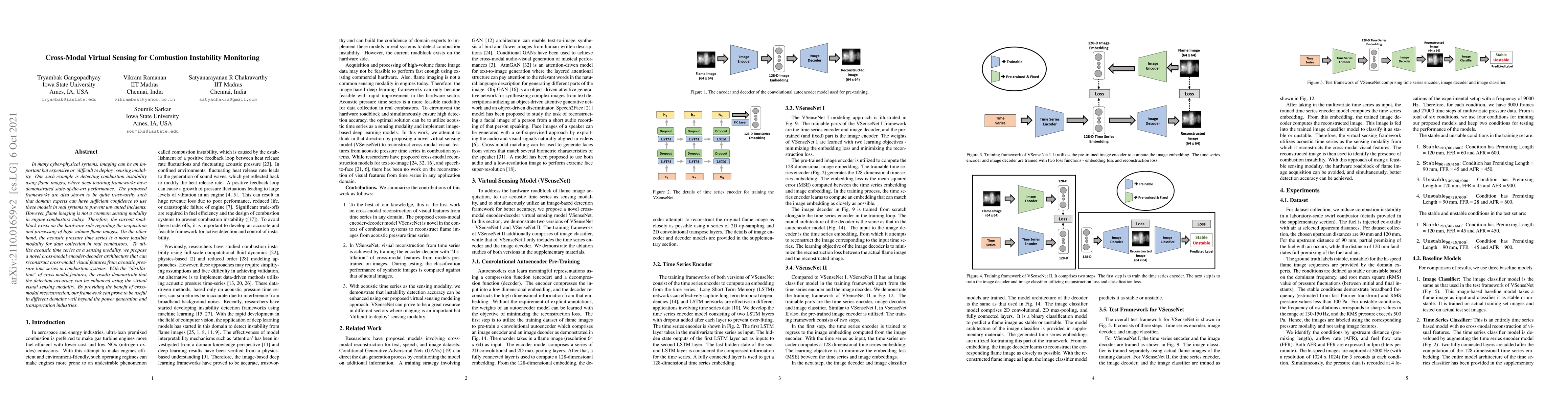 In many cyber-physical systems, imaging can be an important but expensive or 'difficult to deploy' sensing modality. One such example is detecting combustion instability using flame images, where deep learning frameworks have demonstrated state-of-the-art performance. The proposed frameworks are also shown to be quite trustworthy such that domain experts can have sufficient confidence to use these models in real systems to prevent unwanted incidents. However, flame imaging is not a common sensing modality in engine combustors today. Therefore, the current roadblock exists on the hardware side regarding the acquisition and processing of high-volume flame images. On the other hand, the acoustic pressure time series is a more feasible modality for data collection in real combustors. To utilize acoustic time series as a sensing modality, we propose a novel cross-modal encoder-decoder architecture that can reconstruct cross-modal visual features from acoustic pressure time series in combustion systems. With the "distillation" of cross-modal features, the results demonstrate that the detection accuracy can be enhanced using the virtual visual sensing modality. By providing the benefit of cross-modal reconstruction, our framework can prove to be useful in different domains well beyond the power generation and transportation industries.