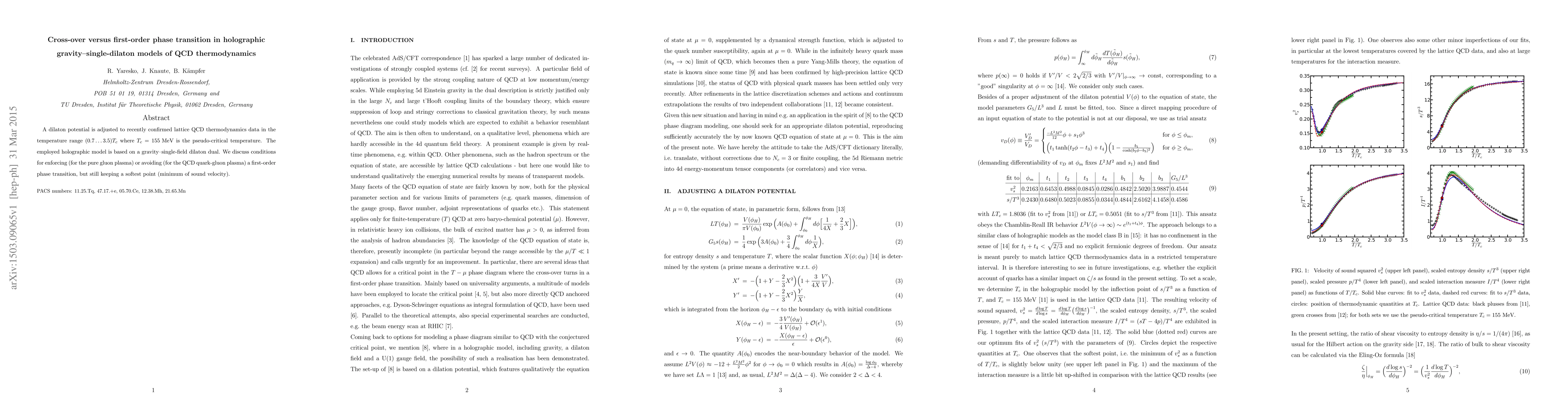 This paper adjusts a dilaton potential in holographic gravity models to fit lattice QCD thermodynamics data, focusing on the temperature range near the critical temperature. It explores conditions for a crossover versus a first-order phase transition in the QCD quark-gluon plasma while maintaining a minimum sound velocity.