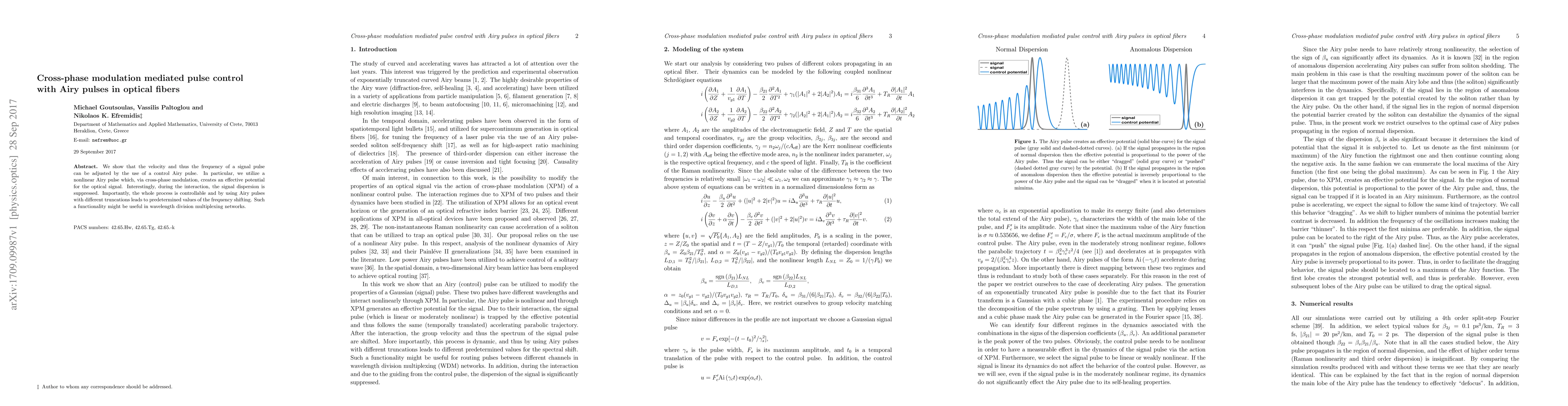 This paper demonstrates the control of signal pulse velocity and frequency using a nonlinear Airy pulse through cross-phase modulation in optical fibers, achieving dispersion suppression and controllable frequency shifting, which could enhance wavelength division multiplexing networks.