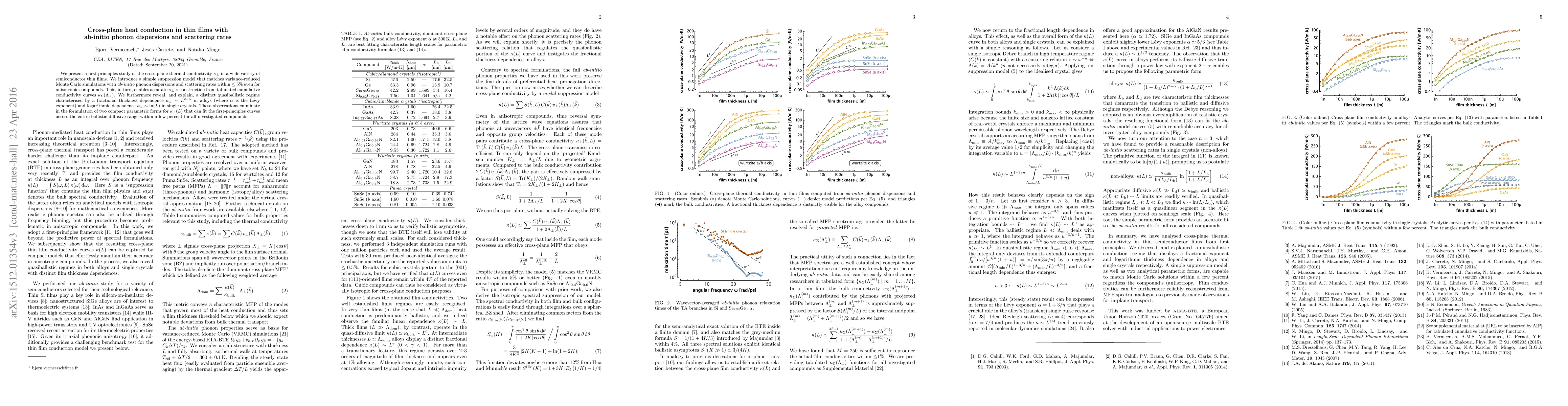 We present a first-principles study of the cross-plane thermal conductivity $\kappa_{\perp}$ in a wide variety of semiconductor thin films. We introduce a simple suppression model that matches variance-reduced Monte Carlo simulations with ab-initio phonon dispersions and scattering rates within $\leq 5\%$ even for anisotropic compounds. This, in turn, enables accurate $\kappa_{\perp}$ reconstruction from tabulated cumulative conductivity curves $\kappa_{\Sigma}(\Lambda_{\perp})$. We furthermore reveal, and explain, a distinct quasiballistic regime characterised by a fractional thickness dependence $\kappa_{\perp} \sim L^{2-\alpha}$ in alloys (where $\alpha$ is the L\'evy exponent) and logarithmic dependence $\kappa_{\perp} \sim \ln(L)$ in single crystals. These observations culminate in the formulation of two compact parametric forms for $\kappa_{\perp}(L)$ that can fit the first-principles curves across the entire ballistic-diffusive range within a few percent for all investigated compounds.
