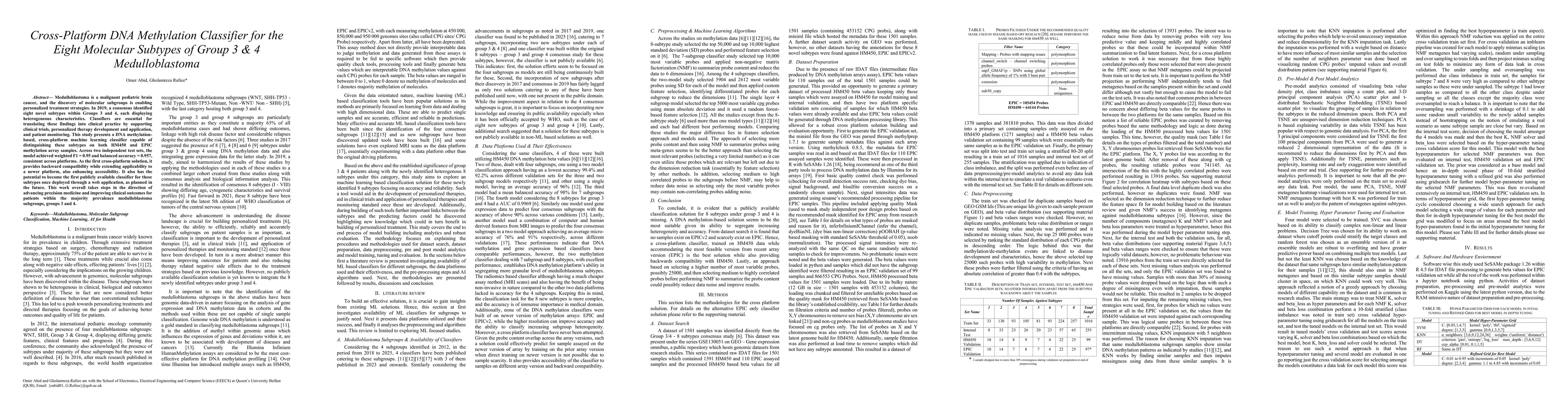 The work introduced a robust cross-platform DNA methylation classifier using NMF for dimensionality reduction and hyperparameter tuning to ensure compatibility between HM450 and EPIC platforms.