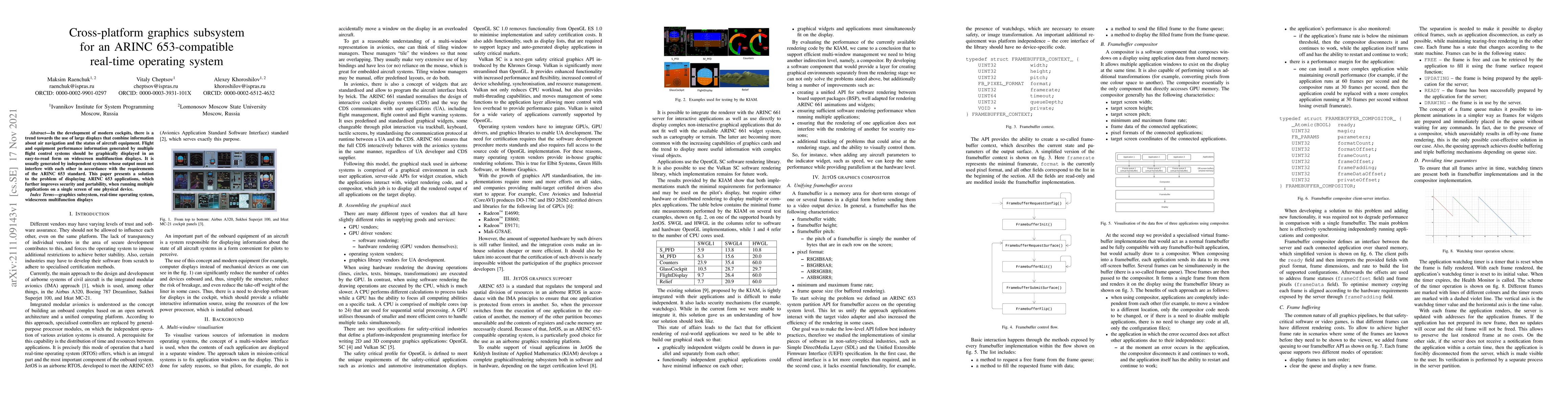 In the development of modern cockpits, there is a trend towards the use of large displays that combine information about air navigation and the status of aircraft equipment. Flight and equipment performance information generated by multiple flight control systems should be graphically displayed in an easy-to-read form on widescreen multifunction displays. It is usually generated by independent systems whose output must not interfere with each other in accordance with the requirements of the ARINC 653 standard. This paper presents a solution to the problem of displaying ARINC 653 applications, which further improves security and portability, when running multiple applications on a single screen of one physical device.