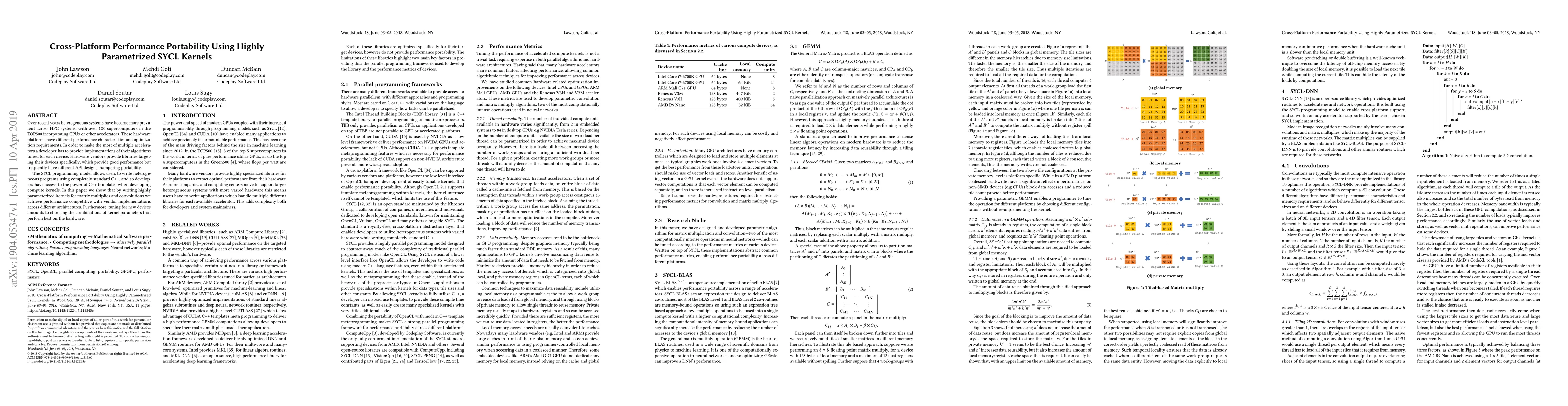 Researchers found that highly parameterized SYCL kernels can achieve performance comparable to vendor-specific implementations across different architectures. This approach enables tuning for new devices by selecting the best combination of kernel parameters.