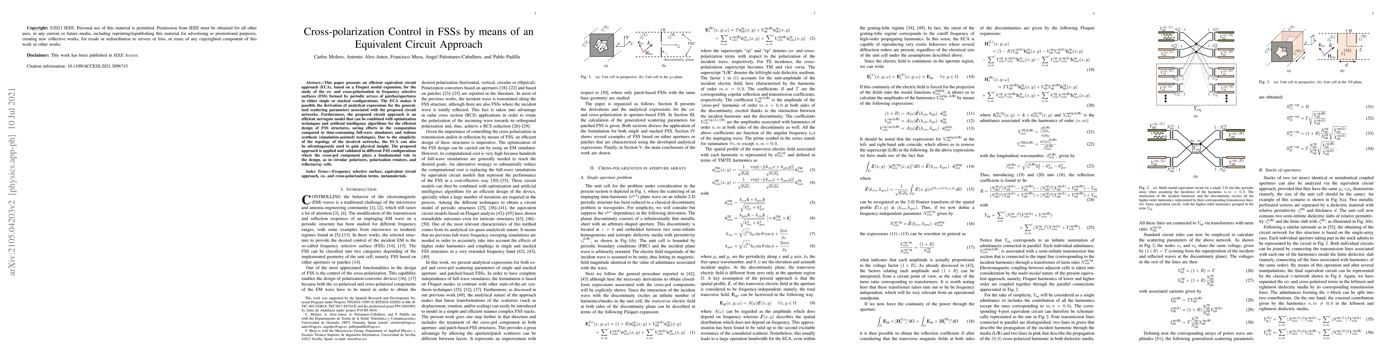 This paper introduces an efficient equivalent circuit approach (ECA) for studying co- and cross-polarization in FSSs, providing analytical expressions for scattering parameters and enabling optimization techniques for FSS design. The ECA simplifies complex networks and offers physical insight, validated in applications like circular polarizers and polarization rotators.
