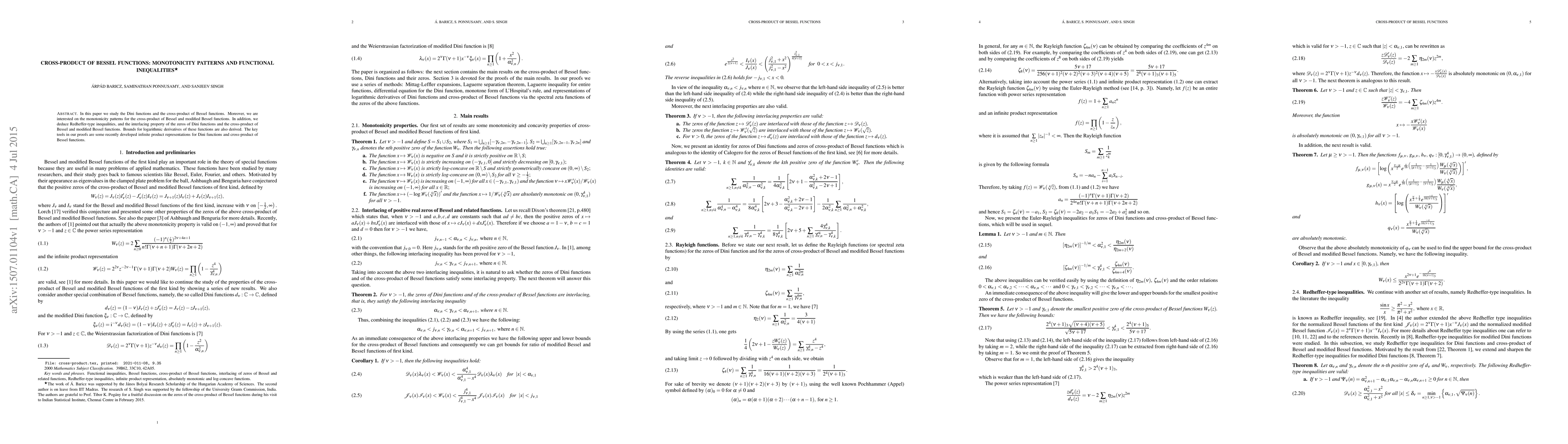 In this paper we study the Dini functions and the cross-product of Bessel functions. Moreover, we are interested on the monotonicity patterns for the cross-product of Bessel and modified Bessel functions. In addition, we deduce Redheffer-type inequalities, and the interlacing property of the zeros of Dini functions and the cross-product of Bessel and modified Bessel functions. Bounds for logarithmic derivatives of these functions are also derived. The key tools in our proofs are some recently developed infinite product representations for Dini functions and cross-product of Bessel functions.