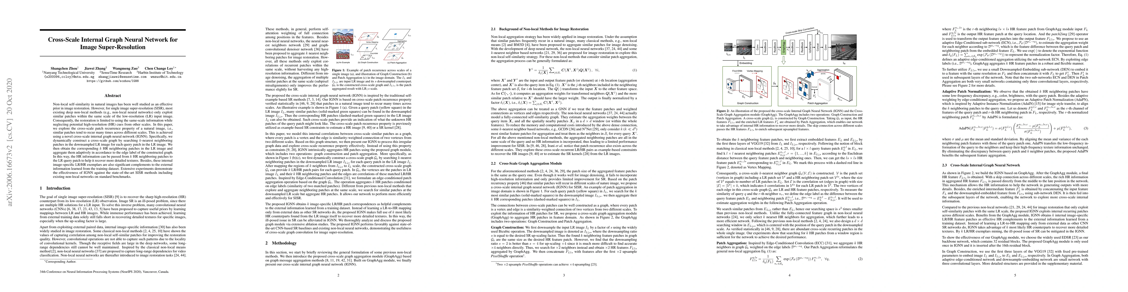 This paper proposes a cross-scale internal graph neural network (IGNN) for image super-resolution (SISR) that leverages non-local self-similarity across different scales to enhance detail recovery. The IGNN dynamically constructs a graph to aggregate high-resolution information from neighboring patches, significantly improving SISR performance compared to existing methods.