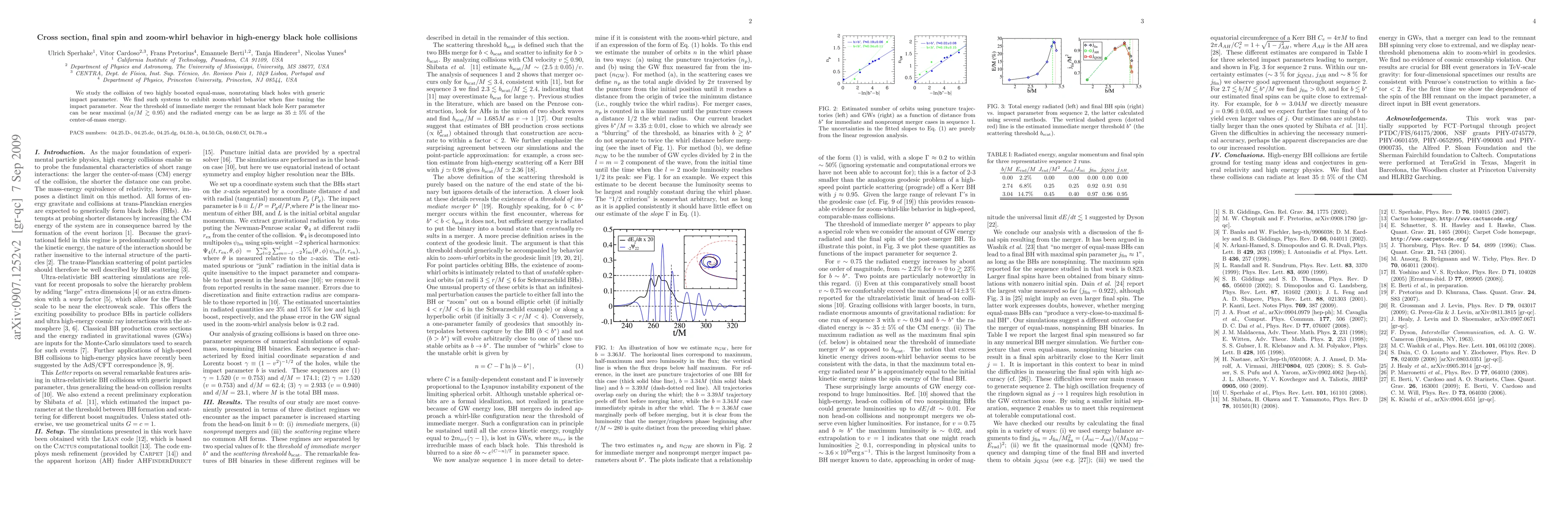 Researchers study high-energy black hole collisions, finding systems can exhibit zoom-whirl behavior when impact parameters are fine-tuned, leading to large energy releases and near-maximal Kerr parameter.