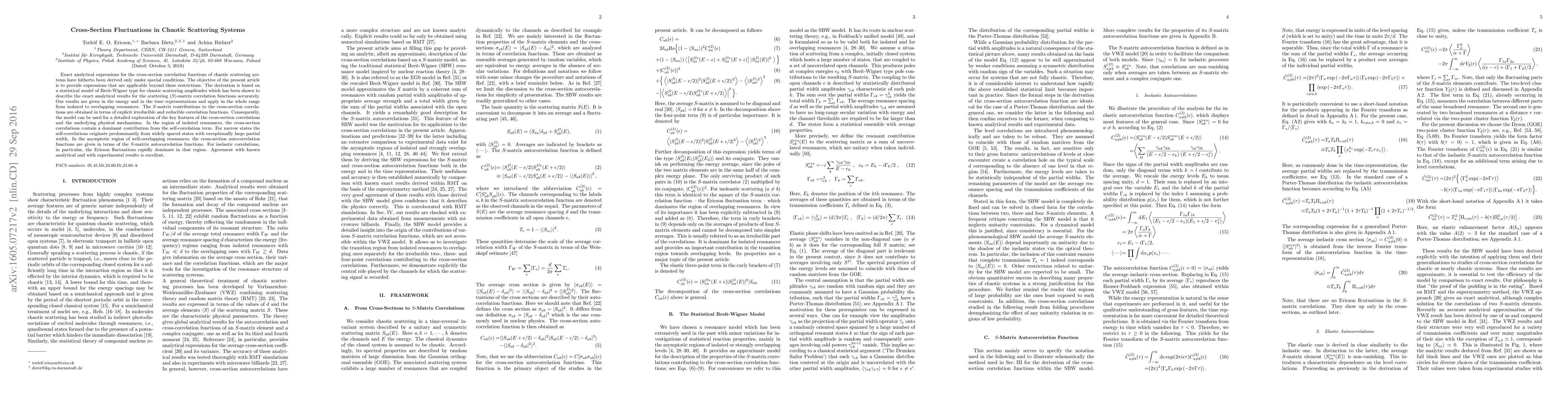 This paper derives analytical expressions for cross-section correlation functions in chaotic scattering systems beyond special conditions, using a Breit-Wigner statistical model. The results apply across the range from isolated to overlapping resonances, providing insights into the underlying physical mechanisms.