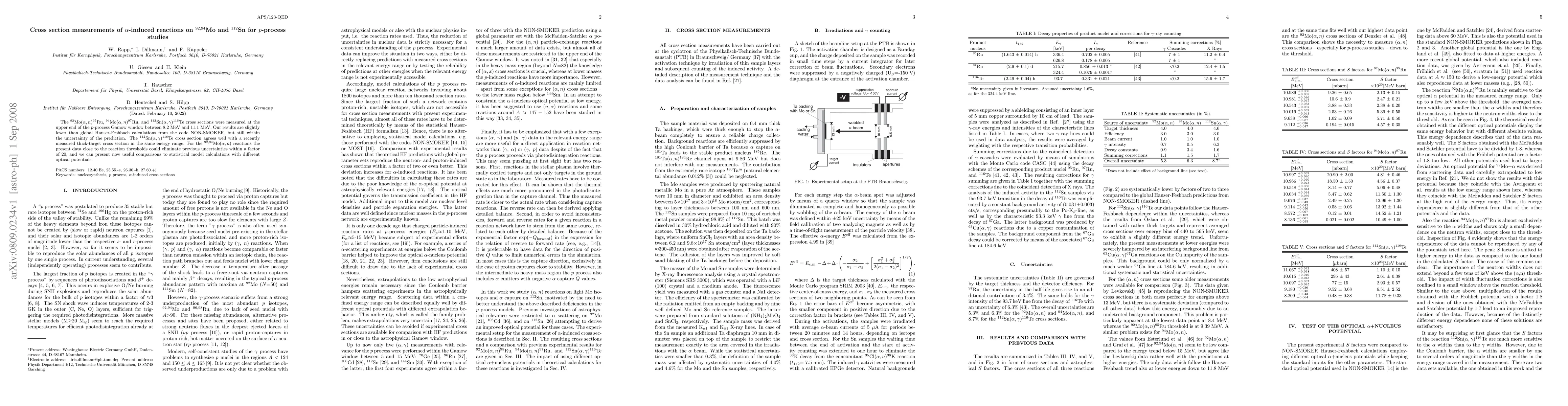 The $^{92}$Mo($\alpha,n$)$^{95}$Ru, $^{94}$Mo($\alpha,n$)$^{97}$Ru, and $^{112}$Sn($\alpha,\gamma$)$^{116}$Te cross sections were measured at the upper end of the $p$-process Gamow window between 8.2 MeV and 11.1 MeV. Our results are slightly lower than global Hauser-Feshbach calculations from the code NON-SMOKER, but still within the uncertainty of the prediction. The $^{112}$Sn($\alpha,\gamma$)$^{116}$Te cross section agrees well with a recently measured thick-target cross section in the same energy range. For the $^{92,94}$Mo($\alpha,n$) reactions the present data close to the reaction thresholds could eliminate previous uncertainties within a factor of 20, and we can present now useful comparisons to statistical model calculations with different optical potentials.