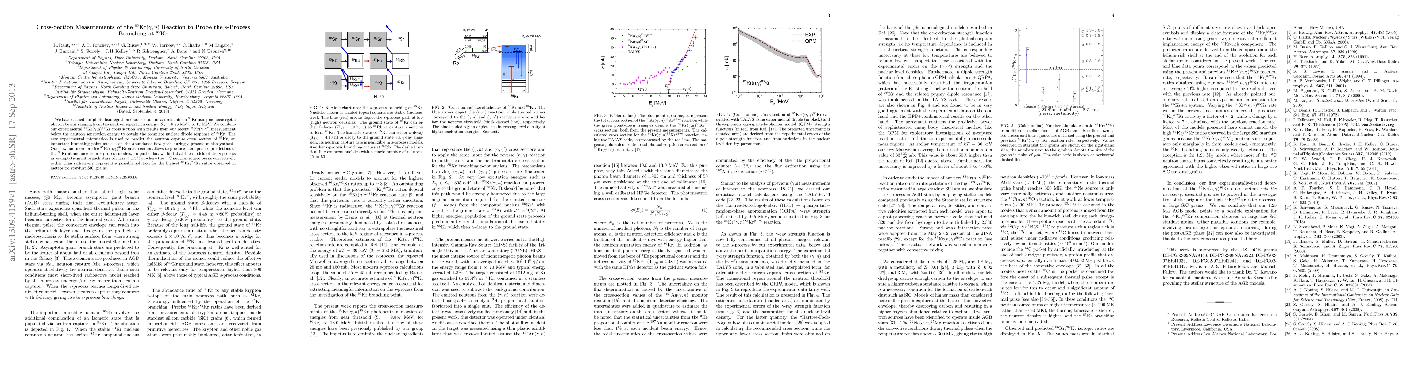 We have carried out photodisintegration cross-section measurements on 86Kr using monoenergetic photon beams ranging from the neutron separation energy, S_n = 9.86 MeV, to 13 MeV. We combine our experimental 86Kr(g,n)85Kr cross section with results from our recent 86Kr(g,g') measurement below the neutron separation energy to obtain the complete nuclear dipole response of 86Kr. The new experimental information is used to predict the neutron capture cross section of 85Kr, an important branching point nucleus on the abundance flow path during s-process nucleosynthesis. Our new and more precise 85Kr(n,g)86Kr cross section allows to produce more precise predictions of the 86Kr abundance from s-process models. In particular, we find that the models of the s-process in asymptotic giant branch stars of mass < 1.5 Msun, where the 13C neutron source burns convectively rather than radiatively, represent a possible solution for the highest 86Kr/82Kr ratios observed in meteoritic stardust SiC grains.