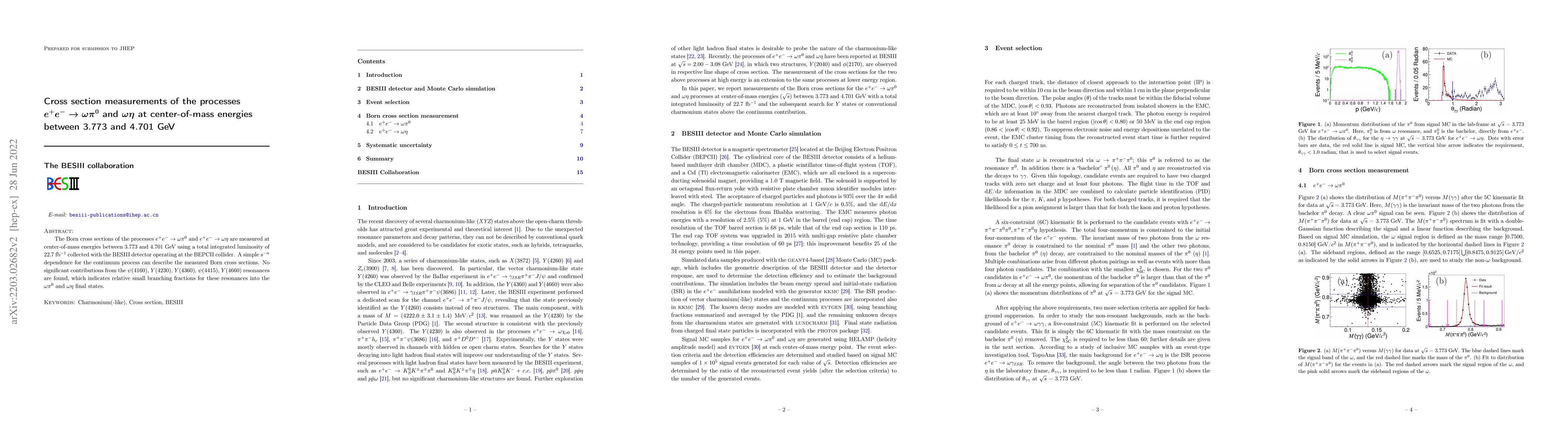 The research utilized data collected by the BESIII detector at the BEPCII collider, analyzing the processes $e^+e^- \rightarrow \omega\pi^{0}$ and $e^+e^- \rightarrow \omega\eta$ over center-of-mass energies from 3.773 to 4.701 GeV with a total integrated luminosity of 22.7 fb$^{-1}$.
