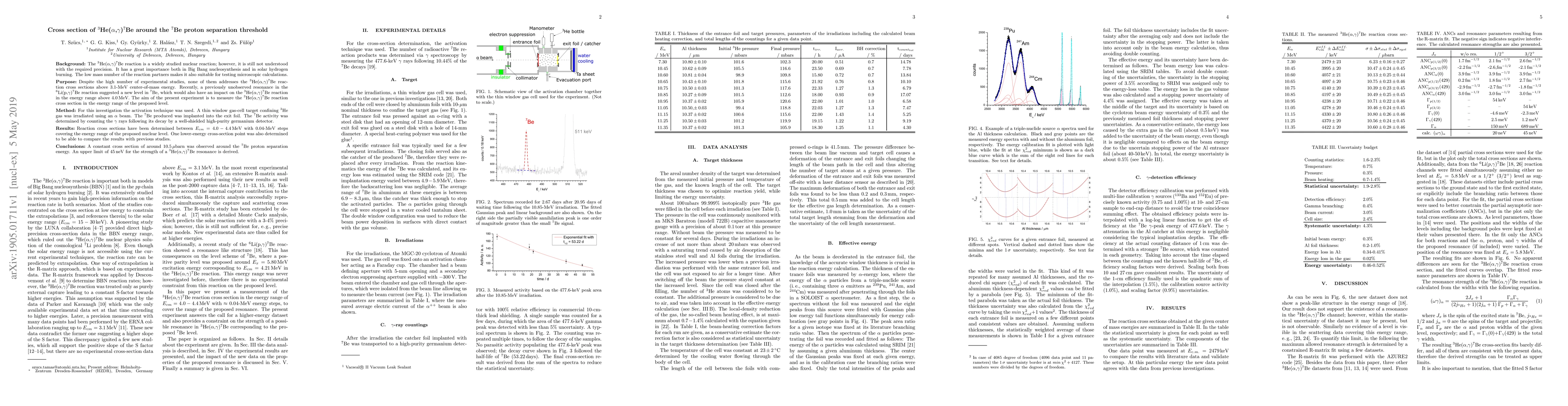 This study measures the $^3$He($\alpha$,$\gamma$)$^7$Be reaction cross section above 4.0 MeV, revealing a constant cross-section around 10.5 $\mu$barn near the $^7$Be proton separation threshold, with an upper limit of 45 neV for a potential resonance. This data aids understanding of Big Bang nucleosynthesis and solar hydrogen burning.