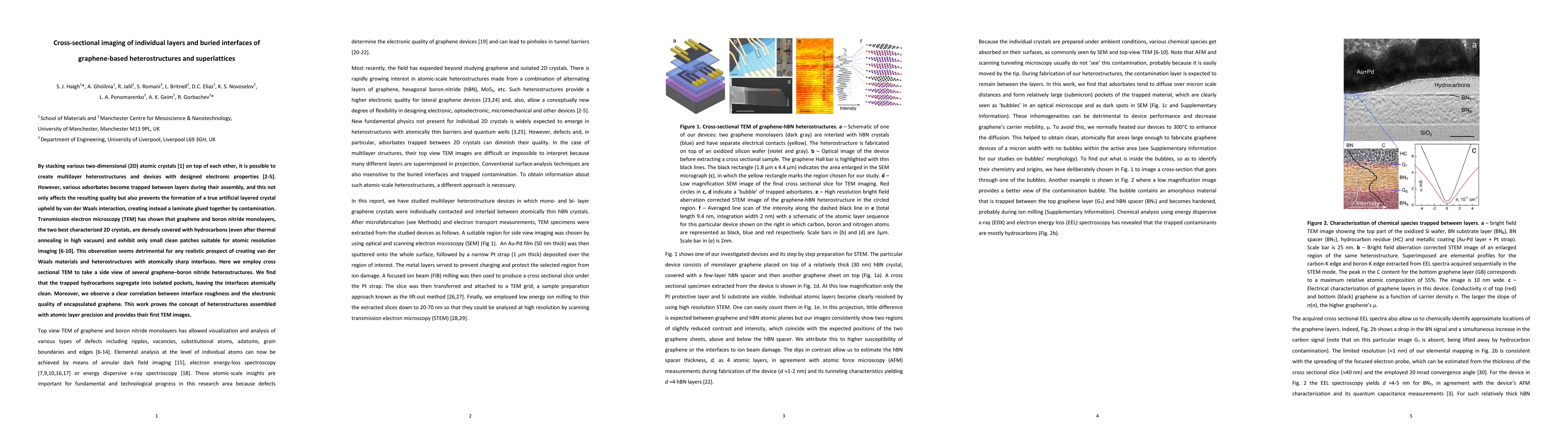 Researchers used cross-sectional transmission electron microscopy to study graphene-boron nitride heterostructures, finding that hydrocarbons trapped between layers can segregate into isolated pockets, leaving interfaces clean and atomically sharp.