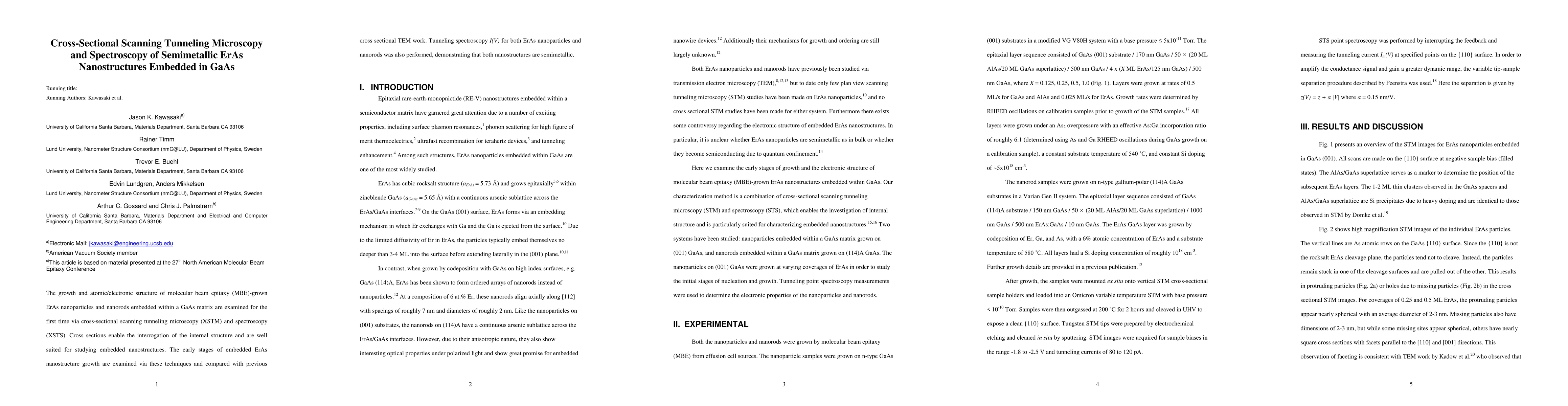 The study employs cross-sectional scanning tunneling microscopy and spectroscopy to investigate the atomic and electronic structure of ErAs nanoparticles and nanorods embedded in a GaAs matrix, revealing their semimetallic nature through tunneling spectroscopy. These techniques provide insights into the growth and internal structure of these semimetallic nanostructures.