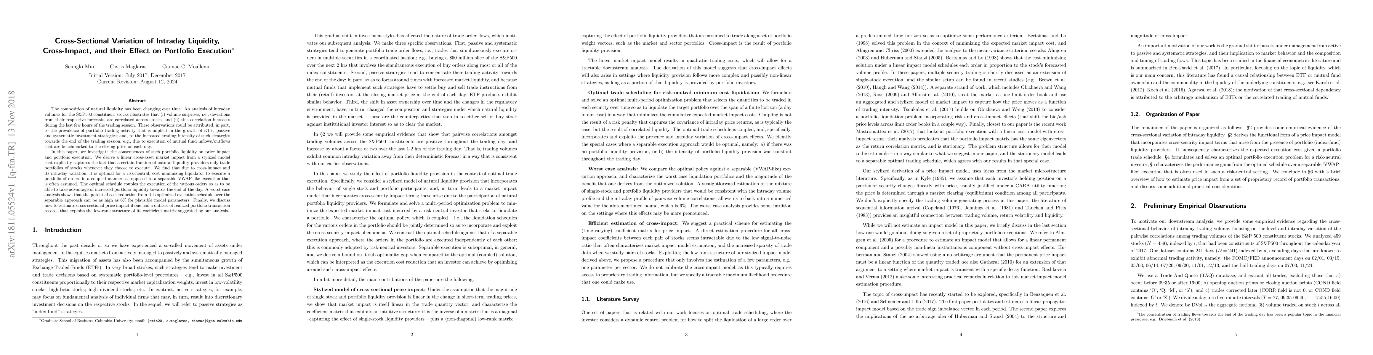 This paper examines how intraday liquidity variations and cross-impact among stocks affect portfolio execution strategies. It finds that portfolio trading strategies, especially towards the end of the trading session, lead to a significant correlation in volume surprises across stocks, optimizing portfolio liquidation by executing orders in a coupled manner to leverage increased liquidity.