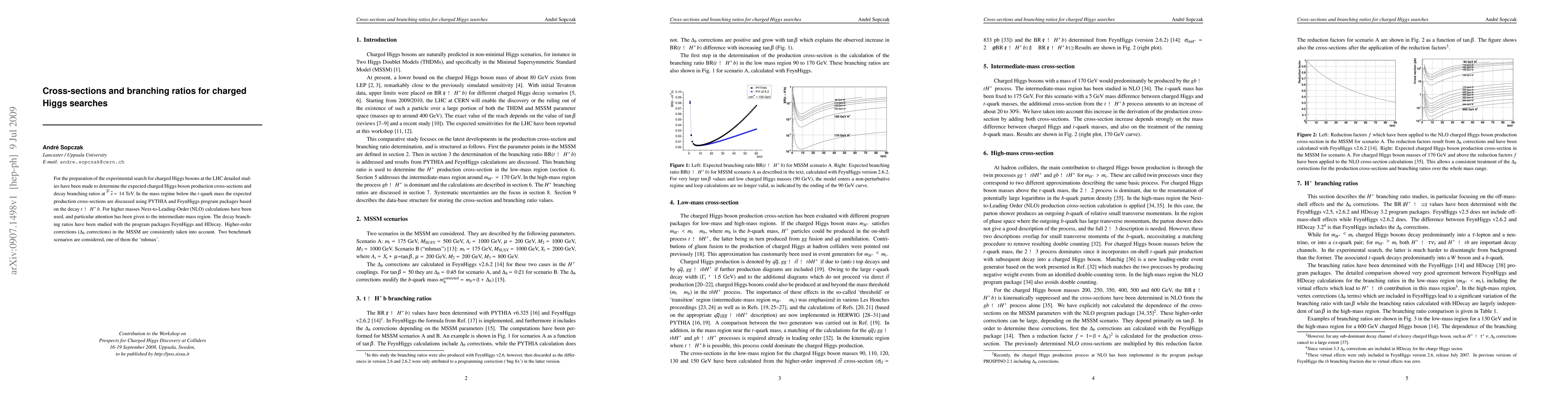 This paper details the expected production cross-sections and decay branching ratios for charged Higgs bosons at the LHC, focusing on scenarios below and above the t-quark mass. It employs PYTHIA and FeynHiggs for lower masses and NLO calculations for higher masses, with special emphasis on intermediate-mass regions.