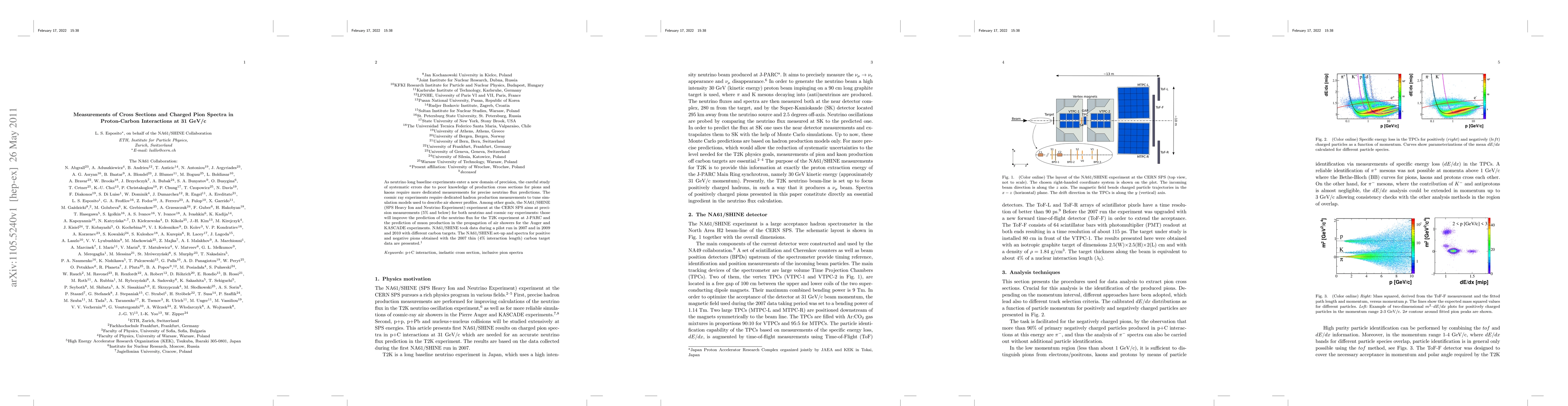As neutrino long baseline experiments enter a new domain of precision, the careful study of systematic errors due to poor knowledge of production cross sections for pions and kaons require more dedicated measurements for precise neutrino flux predictions. The cosmic ray experiments require dedicated hadron production measurements to tune simulation models used to describe air shower profiles. Among other goals, the NA61/SHINE (SPS Heavy Ion and Neutrino Experiment) experiment at the CERN SPS aims at precision measurements (5% and below) for both neutrino and cosmic ray experiments: those will improve the prediction of the neutrino flux for the T2K experiment at J-PARC and the prediction of muon production in the propagation of air showers for the Auger and KASCADE experiments. NA61/SHINE took data during a pilot run in 2007 and in 2009 and 2010 with different carbon targets. The NA61/SHINE set-up and spectra for positive and negative pions obtained with the 2007 thin (4% interaction length) carbon target data are presented.