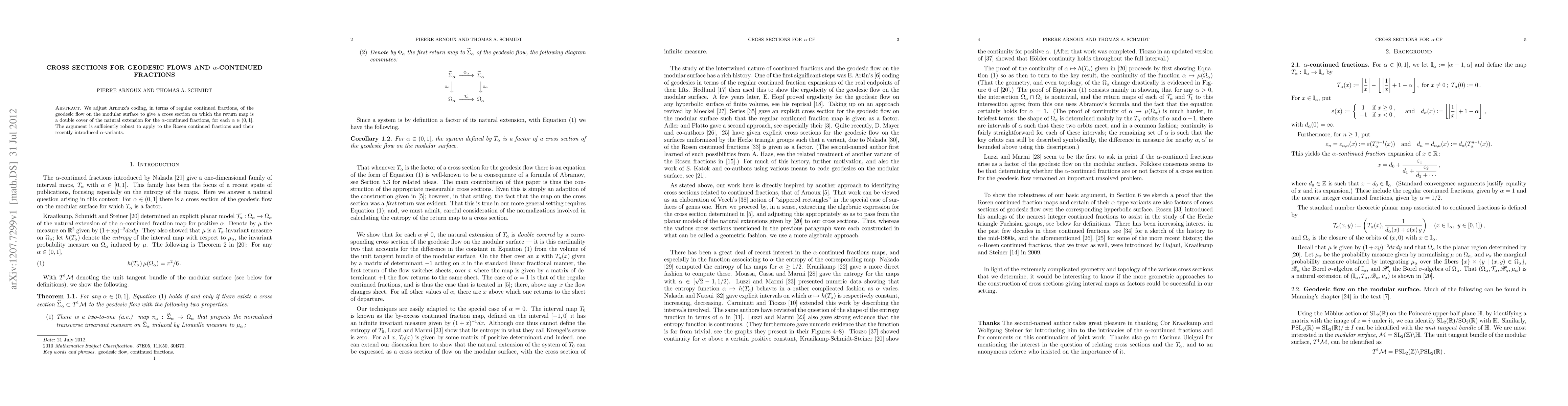 We adjust Arnoux's coding, in terms of regular continued fractions, of the geodesic flow on the modular surface to give a cross section on which the return map is a double cover of the natural extension for the \alpha-continued fractions, for each $\alpha$ in (0,1]. The argument is sufficiently robust to apply to the Rosen continued fractions and their recently introduced \alpha-variants.