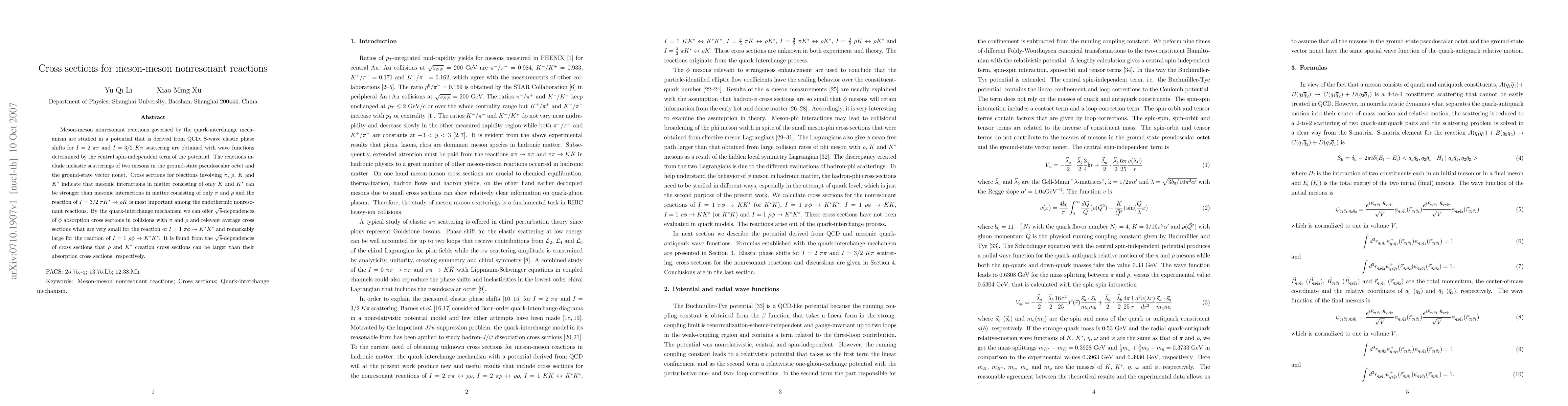 Meson-meson nonresonant reactions governed by the quark-interchange mechanism are studied in a potential that is derived from QCD. S-wave elastic phase shifts for I=2 \pi\pi and I=3/2 K \pi scattering are obtained with wave functions determined by the central spin-independent term of the potential. The reactions include inelastic scatterings of two mesons in the ground-state pseudoscalar octet and the ground-state vector nonet. Cross sections for reactions involving pion, rho, K and K^* indicate that mesonic interactions in matter consisting of only K and K^* can be stronger than mesonic interactions in matter consisting of only pions and rhos and the reaction of I=3/2 \pi K^* \to \rho K is most important among the endothermic nonresonant reactions. By the quark-interchange mechanism we can offer \sqrt s-dependences of phi absorption cross sections in collisions with pion and rho and relevant average cross sections what are very small for the reaction of I=1 \pi \phi \to K^* K^* and remarkably large for the reaction of I=1 \rho \phi \to K^* K^*. It is found from the \sqrt s-dependences of cross sections that rho and K^* creation cross sections can be larger than their absorption cross sections, respectively.