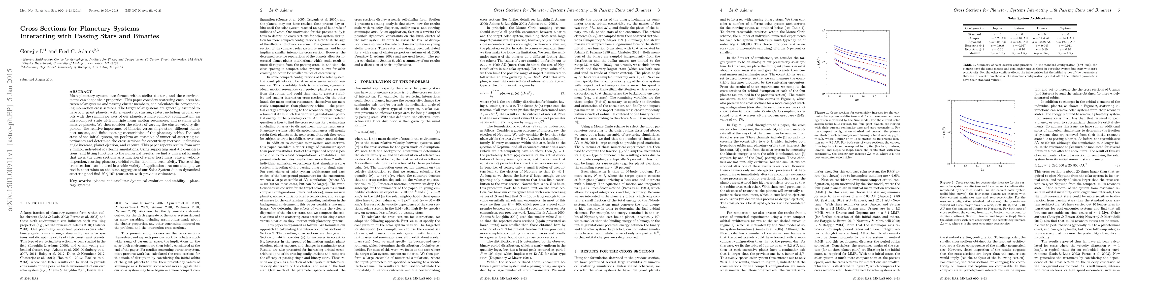 This paper calculates cross sections for planetary systems interacting with passing stars and binaries, providing a universal formula for predicting the effects of these interactions on planetary orbits and system properties.