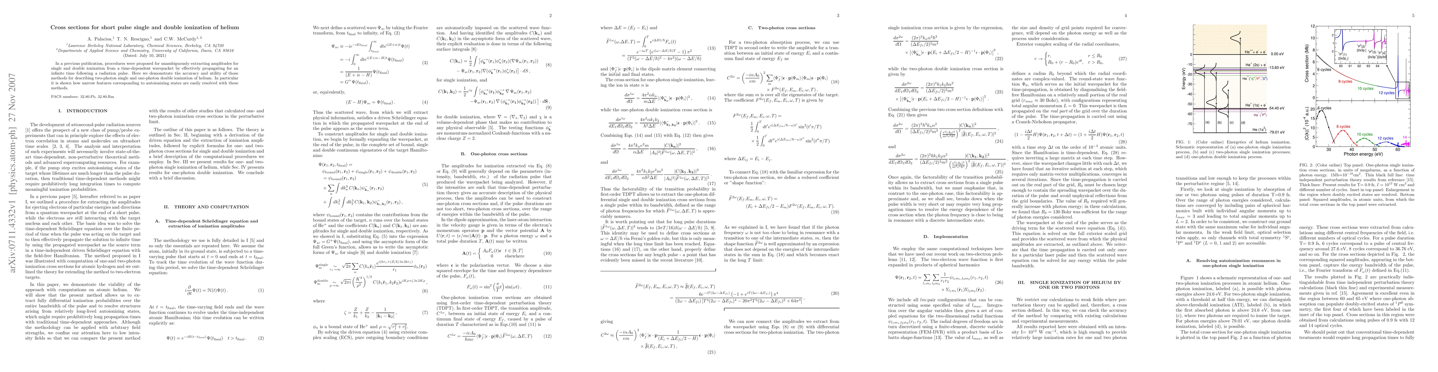 This paper validates methods for extracting ionization amplitudes from time-dependent wavepackets, demonstrating their accuracy in describing two-photon single and one-photon double ionization of helium, and highlighting the resolution of narrow autoionizing state features.
