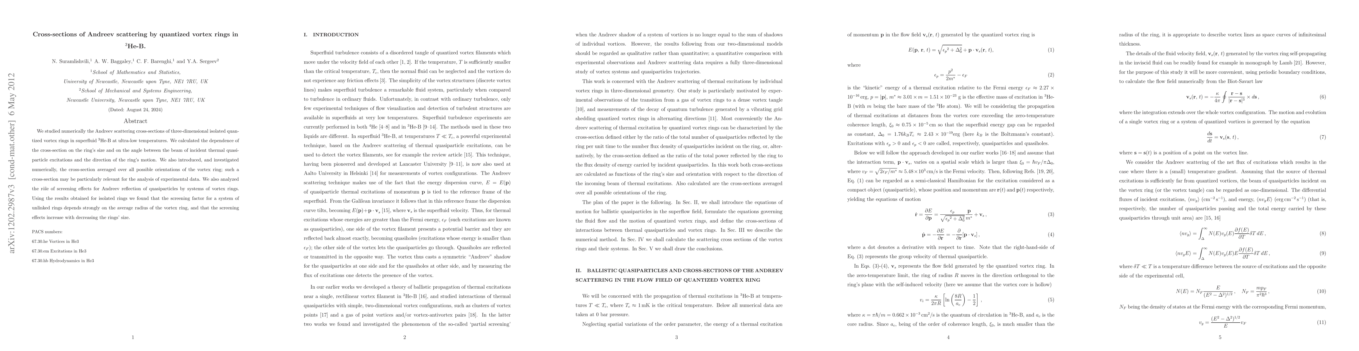 This paper numerically investigates Andreev scattering cross-sections for quantized vortex rings in superfluid 3He-B, analyzing their dependence on ring size and orientation. It also examines the impact of screening effects on quasiparticle reflection in systems of vortex rings, finding that screening increases with smaller ring radii.