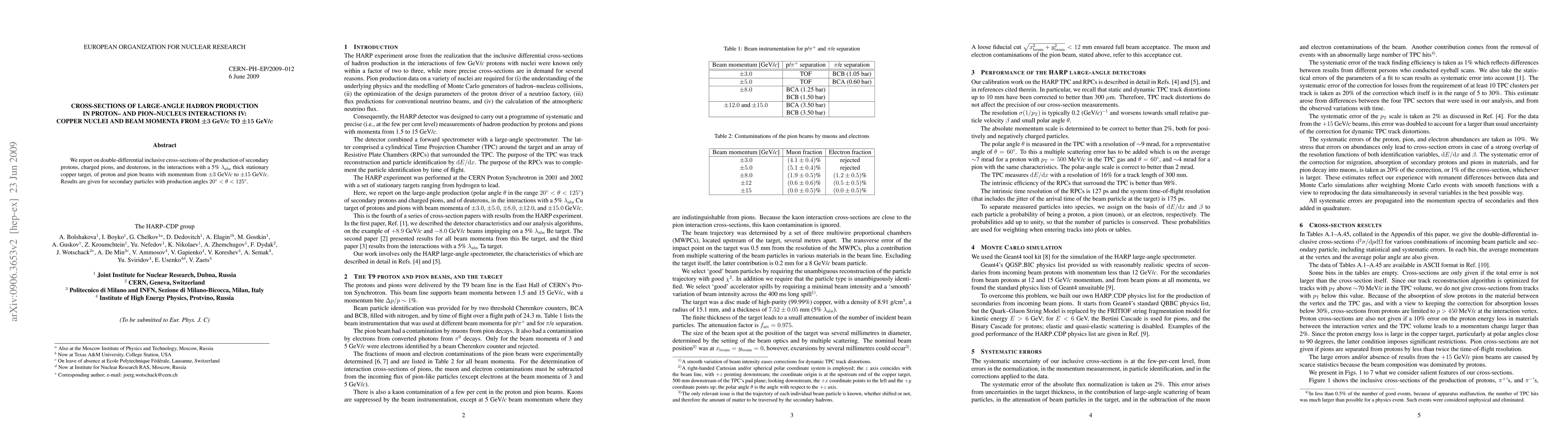 This study investigates the double-differential inclusive cross-sections for secondary proton, charged pion, and deuteron production in proton and pion interactions with copper nuclei at beam momenta ranging from ±3 GeV/c to ±15 GeV/c, focusing on particles produced at angles between 20 and 125 degrees.