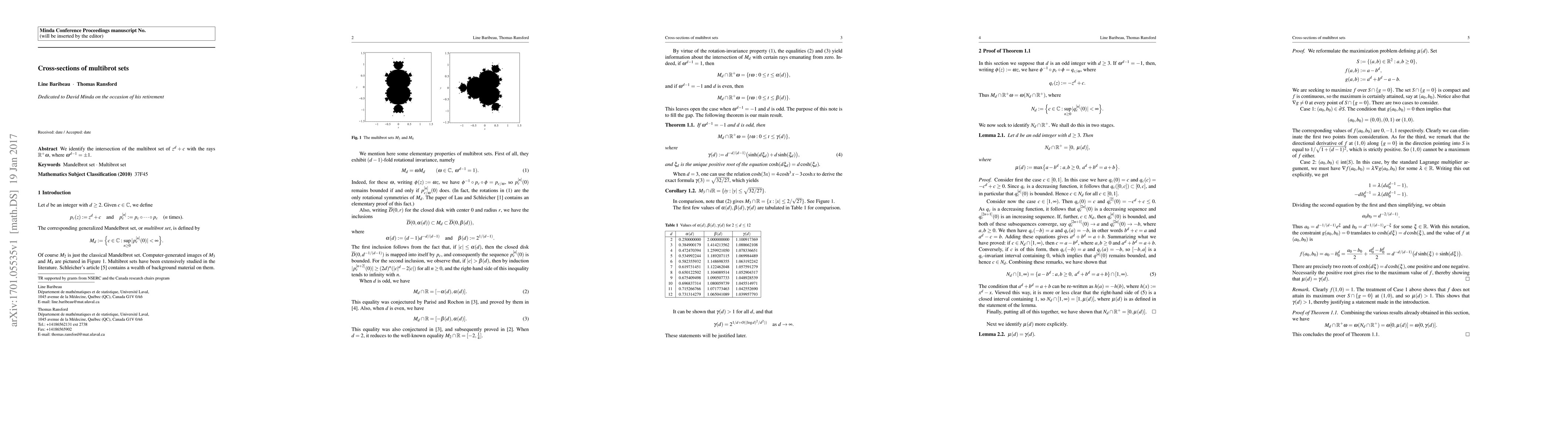 We identify the intersection of the multibrot set of $z^d+c$ with the rays ${\mathbb R}^+\omega$, where $\omega^{d-1}=\pm1$.