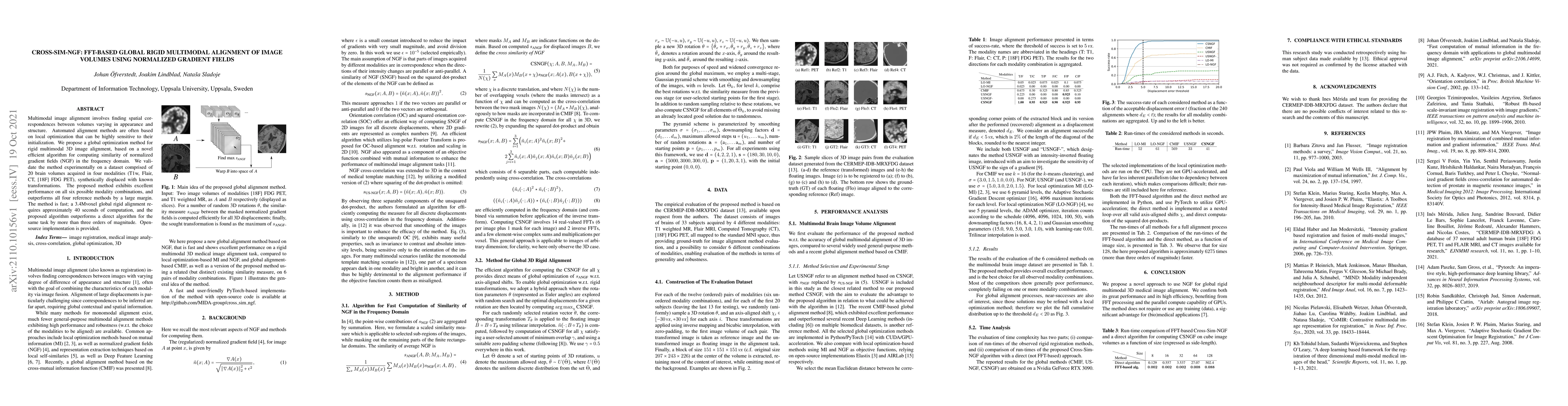 A new method for rigid multimodal 3D image alignment using normalized gradient fields has been proposed and validated on a dataset of brain volumes, outperforming existing methods with excellent performance and speed.