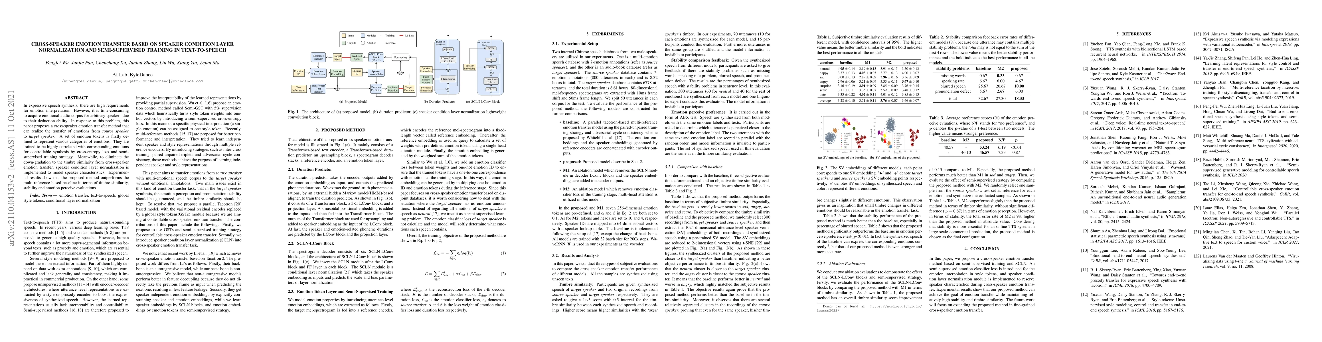This paper proposes a cross-speaker emotion transfer method for expressive speech synthesis that uses emotion tokens and semi-supervised training to achieve emotion transfer while maintaining timbre similarity through speaker condition layer normalization. Experimental results indicate superior performance over baseline methods in timbre similarity and emotion perception.