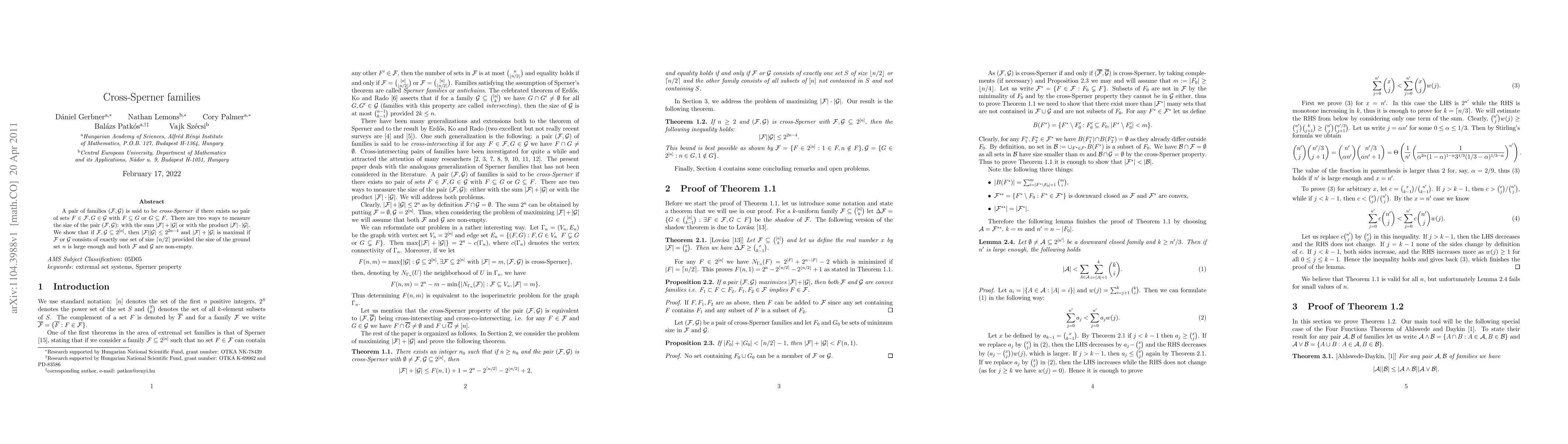 The research employs combinatorial techniques, specifically analyzing cross-Sperner families of subsets of a ground set [n] and utilizing shadow lemmas and the Four Functions Theorem by Ahlswede and Daykin.
