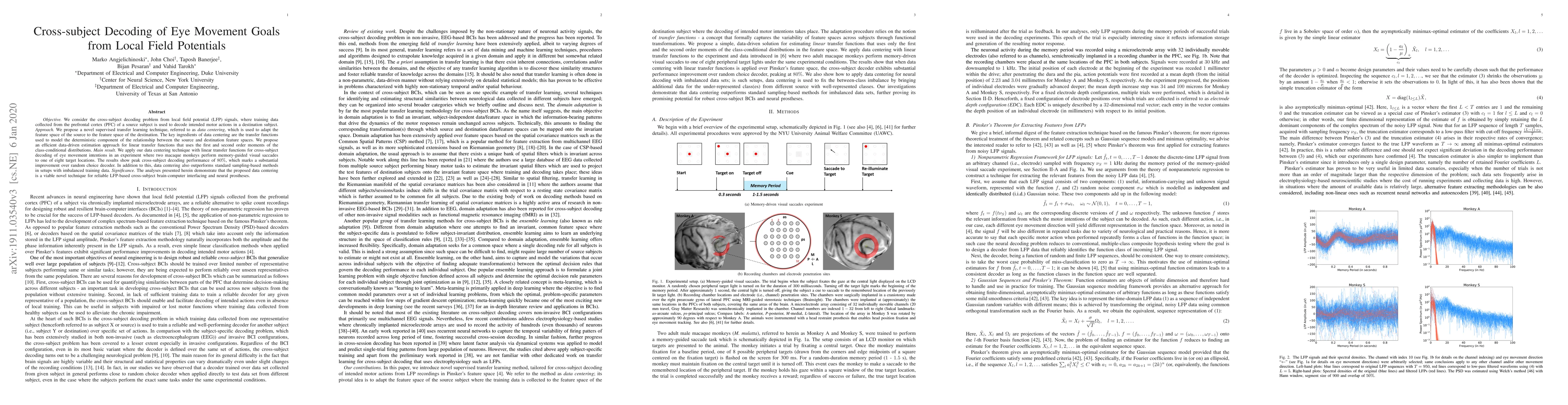 Researchers developed a novel technique for decoding eye movement goals from local field potentials across subjects, achieving 80% accuracy in cross-subject decoding of macaque monkeys' intentions.