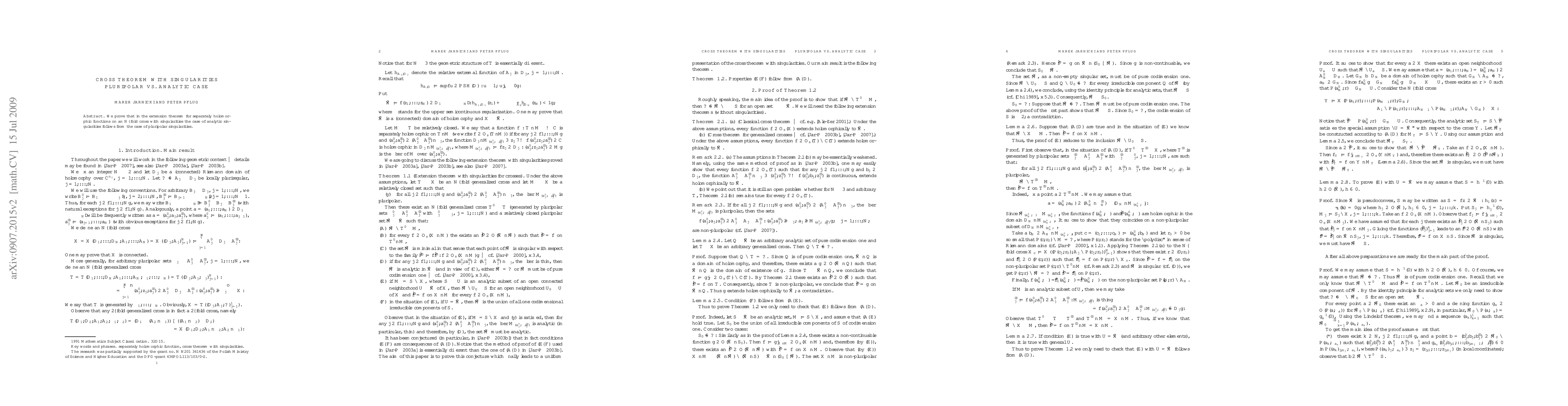 Summary: The paper establishes that the extension theorem for separately holomorphic functions on an $N$-fold cross with singularities holds true for analytic singularities when the case with pluripolar singularities is already established. This result bridges the gap between analytic and pluripolar singularity cases in complex analysis.